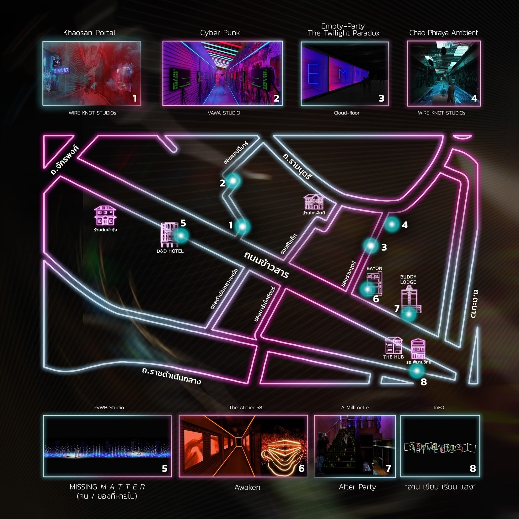 และนับตั้งแต่สัปดาห์นี้เป็นต้นไป เรื่องราวของถนนข้าวสารจะถูกนำกลับมาเล่าขานอีกครั้งใน Khao San Hide and Seek เข้าซอย ข้าวสาร นิทรรศการที่เตรียมพาผู้ชมไปสำรวจอดีตและเรื่องเล่าของข้าวสารผ่านนิทรรศการ Lighting Installation