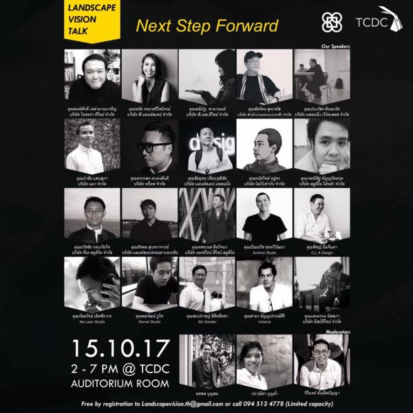 ลงชื่อเข้าร่วมกิจกรรมได้ฟรีที่เฟซบุ๊ก Landscape Vision แล้วเจอกันที่ TCDC บางรัก วันอาทิตย์ที่ 15 ต.ค. เวลา 14:00 น. เป็นต้นไปนะ