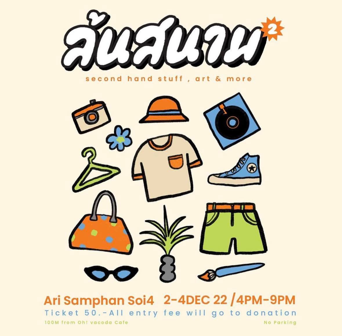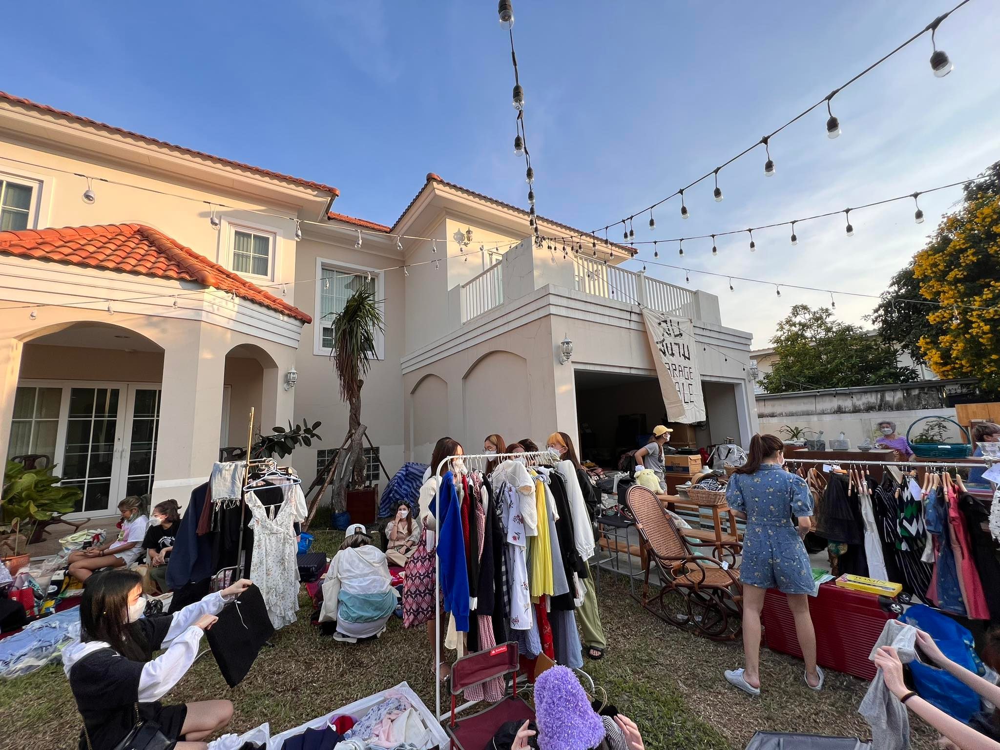 และนี่ก็คืองาน Garage Sale ในโลเคชันสุดลับ ซึ่งเป็นงานขายเสื้อผ้ามือสองที่เหล่าอินฟลูเอนเซอร์ นางแบบ และเน็ตไอดอลทั่วฟ้าเมืองไทย ต่างขนเสื้อผ้าและแอกเซสเซอรีในคลังสมบัติของตัวเองมาเลหลังขายแบกับดินในราคาเหมือนแจกฟรี! โดยความเท่ของงาน ล้นสนาม ที่จัดปีนี้เป็นปีที่ 2 แล้ว คือการเป็นตลาดนัดทรงกองโจรแบบ Garage Sale สไตล์อเมริกันที่จู่ ๆ ก็เปิดรั้วบ้าน เอาของมากอง ๆ แล้วให้คนมาเดินคุ้ยของกันแบบดิบ ๆ ซึ่งเขามักจะแอบจัดกันแบบไฟลุกไม่ให้ใครได้ตั้งตัวเสมอ อย่างในปีนี้ก็เลือกปักหมุดกันที่โลเคชันเดิม ซึ่งเป็นสนามหญ้าขนาดใหญ่ของเพื่อนบ้านในซอยร้าน Oh! Vacoda Cafe (อารีย์สัมพันธ์ 4) นั่นเอง!