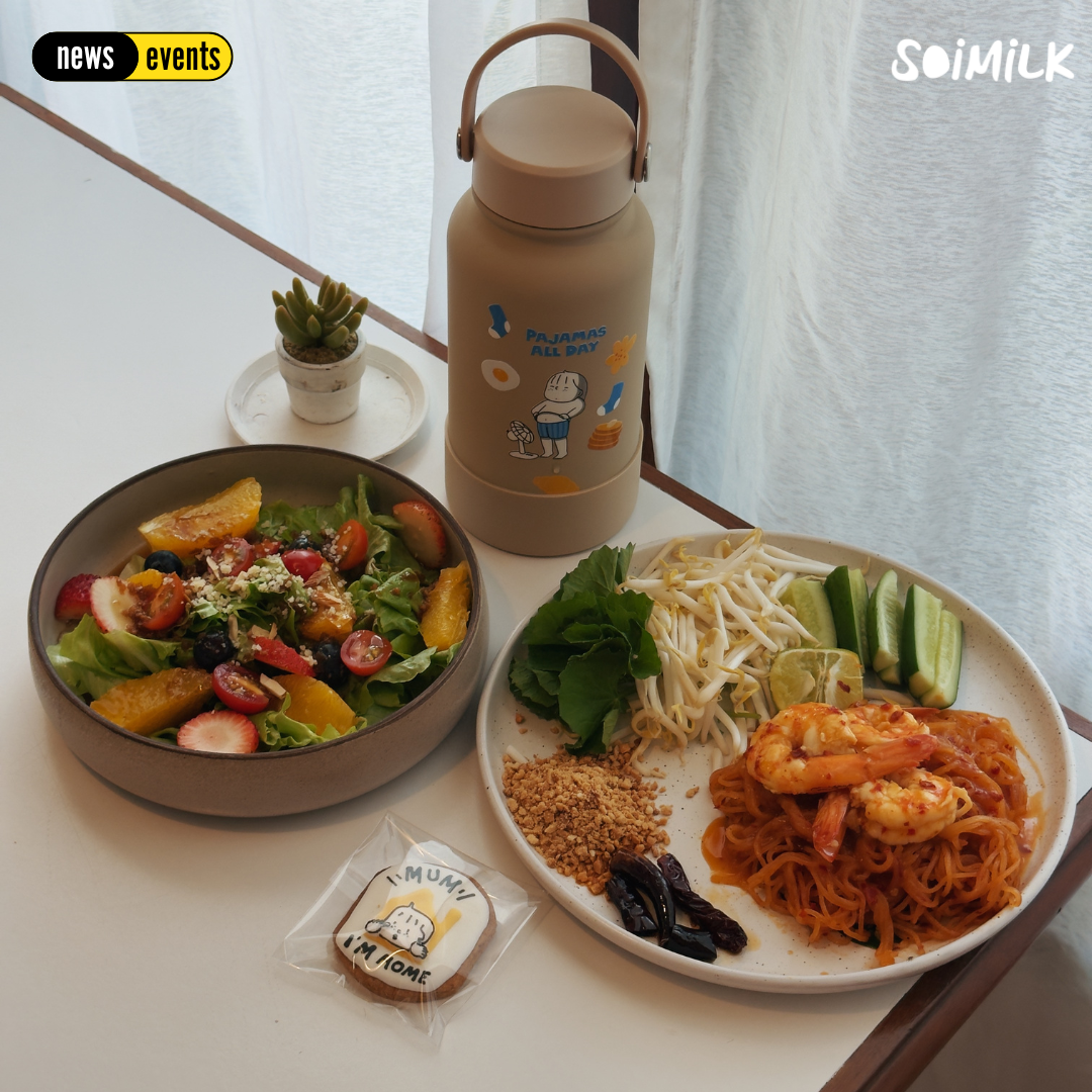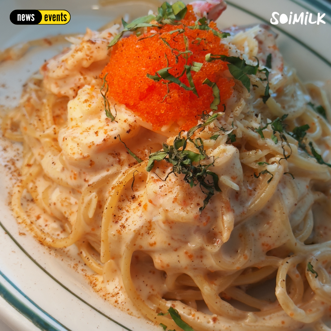 ใครที่ใช้สมาธิกับการติดสติกเกอร์จนเหนื่อย ของกินฝีมือคุณแม่ก็คืออร่อยไม่แพ้ร้านในเมืองเลยนะ ลองสั่งเป็น ‘สปาเกตตี้ไข่ครีมกุ้ง’ (330 บาท) ที่เราว่าน่าจะถูกใจเด็กอ้วนเป็นแน่แท้ เพราะรสชาติเขาครีมมี่สะใจ แถมมีกุ้งหลายตัวใส่มาแบบไม่ยั้ง อีกจานที่เราชอบมากไม่แพ้กันคือ ‘หมี่กะทิพุมเรียงกุ้งสด’ (175 บาท) เมนูผัดหมี่ในความทรงจำของคุณแม่และอาม่า เส้นหมี่เคลือบซอสเปรี้ยวหวาน บีบมะนาวโรยถั่วเข้าหน่อยก็คืออร่อยเลย