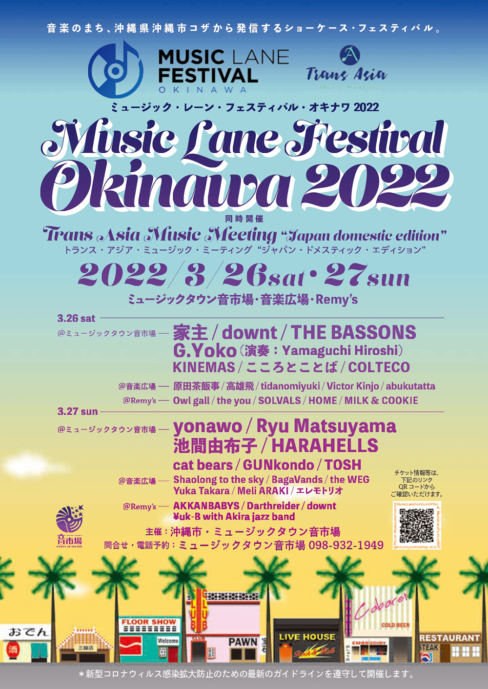 Music Lane Festival Okinawa คือเทศกาลดนตรี Showcase Festival ที่จัดขึ้นทั้งในรูปแบบออฟไลน์และออนไลน์ ณ เมืองโคซ่า จ.โอกินาวะ ประเทศญี่ปุ่น โดยความดีงามของเทศกาลนี้ก็คือการที่เขาเป็นเทศกาลดนตรีเดียวในญี่ปุ่นที่เปิดพื้นที่ให้ศิลปินอิสระมาโชว์ของและปล่อยพลังกันแบบเต็มที่ ซึ่งผู้ชมอย่างเราก็อาจจะได้วงใหม่ ๆ ไว้ไปตามติ่งตามเสพกันต่อไป โดยศิลปินที่จะมาเปิดคอนเสิร์ตในงานนี้ก็นำทีมด้วยเหล่าวงอินดี้ที่กำลัง 'มา' ในประเทศญี่ปุ่น ไม่ว่าจะเป็น yonawo, Yanushi, Ryu Matsuyama, downt, TOSH และอีกมากมาย