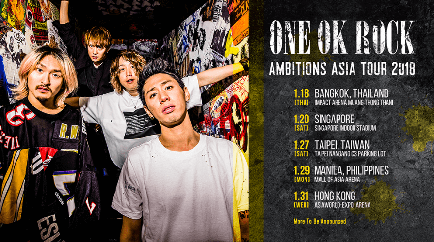 ONE OK ROCK ใช้ช่วงต้นปีใหม่อย่างเดือนมกราคม พ.ศ. 2561 เปิดรูทเอเชียทัวร์ครั้งล่าสุดของพวกเขาเสียเลย และมันพิเศษตรงที่ประเทศไทยถูกเลือกเป็นประเทศเปิดทัวร์คอนเสิร์ตในครั้งนี้ด้วย โดยคอนเสิร์ตจะมีขึ้นในวันที่ 18 มกราคม พ.ศ. 2561 และได้อาวาลอน ไลฟ์ ที่เคยพาเราไปมันกับ RADWIMPS 2017 Asia Live Tour In Bangkok เมื่อกลางปีนี้เป็นผู้ชักชวนพวกเขามาปล่อยความมันให้แฟน ๆ กันอีกครั้ง งานนี้จึงรับประกันได้เลยว่าจะต้องเป็นอีกหนึ่งคอนเสิร์ตที่มีคุณภาพและการจัดการที่ดีแน่ ๆ (ตอนไปดู RADWIMPS เราก็ปลื้มมาก แม้จะเป็นคอนเสิร์ตขนาดเล็ก ๆ ก็เถอะ) และเมื่อเป็นเอเชียทัวร์ทั้งที ONE OK ROCK Ambitions Asia Tour 2018 จึงพร้อมเขย่าความมันกันที่อิมแพค อารีนา เมืองทองธานีกันเลย ! รองรับเหล่าแฟน ๆ ได้จุใจแน่นอน