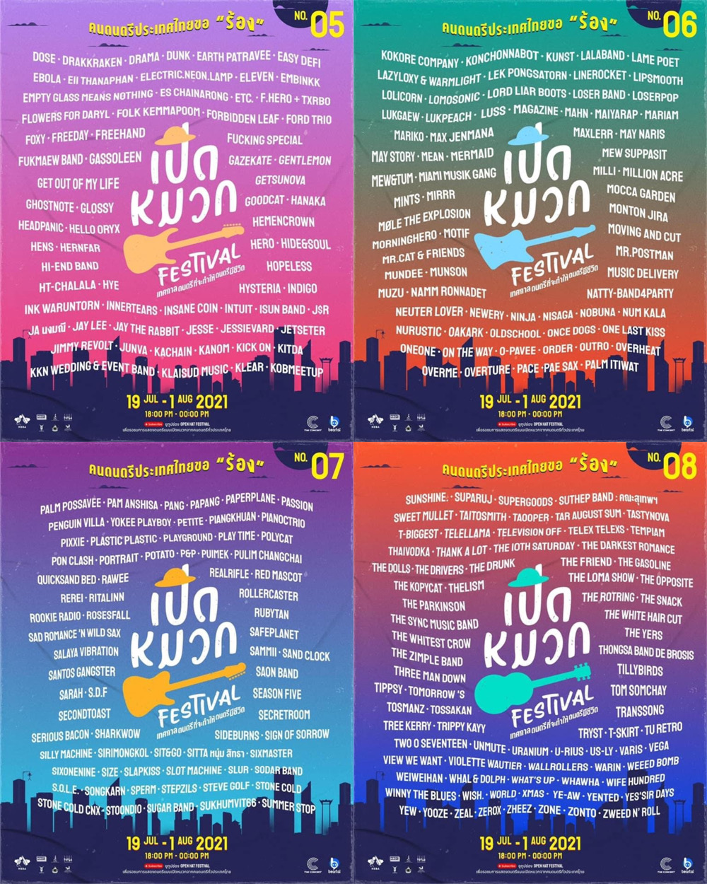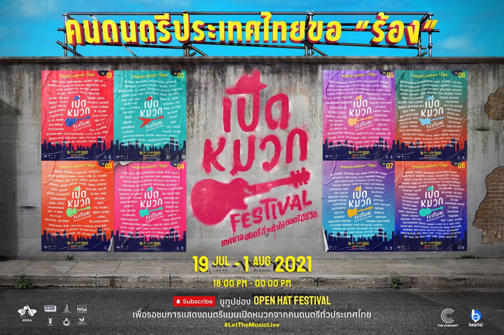 เปิดหมวกเฟสติวัล จะจัดขึ้นในวันที่ 19 ก.ค. - 1 ส.ค. แสดงดนตรีต่อเนื่องกันวันละ 6 ชั่วโมง หกโมงเช้ายันเที่ยงคืน โดยคอเพลงหน้าจอสามารถสนับสนุนคนดนตรีได้ผ่านเลขบัญชี ซึ่งจะขึ้นบนหน้าจอระหว่างที่ศิลปินกำลังแสดง รายได้ทั้งหมดเข้าสู่ศิลปินโดยตรง หรือในกรณีที่ศิลปินเลือกจะไม่รับเงิน ก็สามารถสนับสนุนเงินเข้าบัญชีกลาง เพื่อช่วยเหลือศิลปินในโครงการที่ได้รับผลกระทบจากวิกฤติโควิดได้เช่นกัน โดยรายได้ที่เข้าสู่ทางนี้จะถูกนำไปจัดแบ่งตามสัดส่วนเท่า ๆ กันต่อไป ติดตามรายละเอียดเพิ่มเติมได้ที่ fb.com/OpenHatFestival