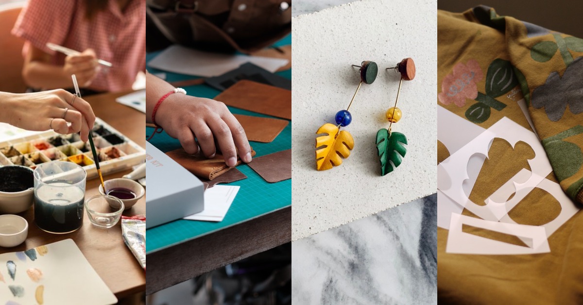 นอกจากจะเราจะได้เจอศิลปินแล้ว เขายังแบ่งพื้นที่ส่วนหนึ่งมาจัดเวิร์กชอปกันถึง 6 คลาส ให้ดีไซเนอร์ได้มาสอนเราคราฟต์งานเองกับมือ ซึ่งแต่ละคลาสก็จะมีความหลากหลายให้เราเลือกเรียน ไม่ว่าจะเป็นทำสีน้ำจากวัสดุธรรมชาติ เย็บกระเป๋าหนังใส่นามบัตร ถักโครเชต์ที่หิ้วขวดน้ำ พิมพ์ฉลุให้ออกมาเป็นลวดลายบนกระเป๋า ทำต่างหูจากวัสดุหนัง และปักผ้าด้วยเทคนิค Punch Needle โดยเราสามารถเช็กตารางเรียนและลงทะเบียนเรียนได้ในเว็บไซต์ Pinkoi จ่ายค่าเวิร์กชอปครบก็เตรียมตัวเตรียมใจไปฝึกปรือกับเซียนตัวจริงกันได้เลย