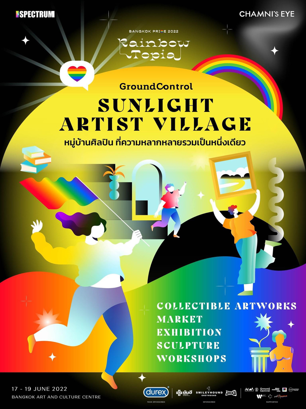 โซนที่สายอาร์ตเลิฟเวอร์อย่างเราให้ความสนใจเป็นพิเศษก็คือ Sunlight Zone ที่จัดแสดงนิทรรศการจากศิลปินที่ทำงานเกี่ยวกับความหลากหลายในเมืองไทยมากมายตั้งแต่ Baphoboy, Nakrob Moonmanas, juli baker and summer, Roger.Major.Tom และอีกกว่า 20 ศิลปิน ที่มาพร้อมกับงานศิลปะหลากรูปแบบ