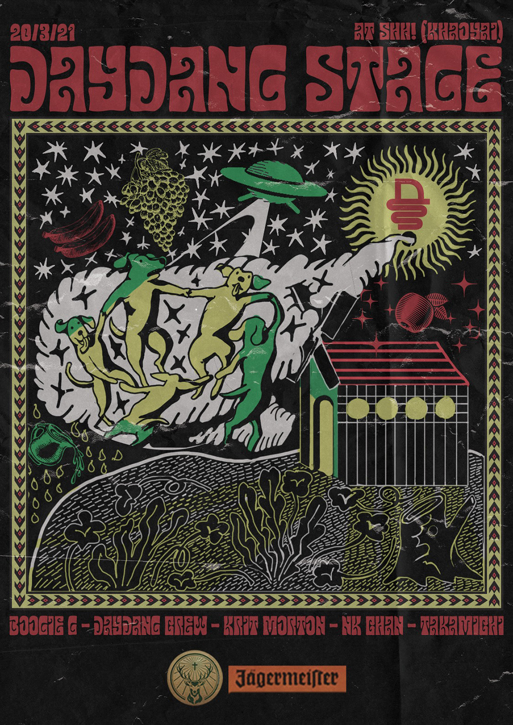 ศิลปินที่จะยกขบวนกันมาสร้างความสนุกรูปแบบใหม่นี้ก็ประกอบด้วย Srirajah Rockers, Supergoodsband, Summer Dress, Soft Pine, Door Plant, Alec Orachi และในส่วนของภาคค่ำจะเป็นการยึดเวทีโดยทีมดีเจ Däydang Stage ที่ประกอบด้วย Boogie, Däydang Crews, Krit Morton, NK Chan และ Takamichi