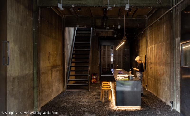 และในส่วนของชั้น 1 เขาก็จัดพื้นที่ให้สามารถมองทะลุจากด้านหน้าและด้านหลังได้ เป็นเหมือนประตูเชื่อมจากพื้นที่เก่าไปสู่พื้นที่ใหม่ โดยที่ยังคงร่องรอยเดิมไว้เช่นกัน ทั้งตี่จู่เอี๊ยะ ห้องน้ำ และกำแพงของร้านค้าเหล็ก ซึ่งเขาจะไม่มีป้ายอธิบายงานเหมือนงานนิทรรศการทั่วไป แต่เราจะสัมผัสได้ถึงเนื้อหาของงานผ่านร่องรอยข้อความบนกำแพงที่กระจายตัวอยู่รอบ ๆ และแม้จะเป็นอาร์ตสเปซที่เดินได้เพียง 2 ชั้น แต่หากเดินดูรอบ ๆ ก็จะมีกิมมิกเล็ก ๆ ให้เราค้นหากันแบบไม่หยุดหย่อน เราจะไม่ขอสปอยล์นะว่ามีตรงไหนบ้าง ต้องไปลองตามหากันเอาเอง