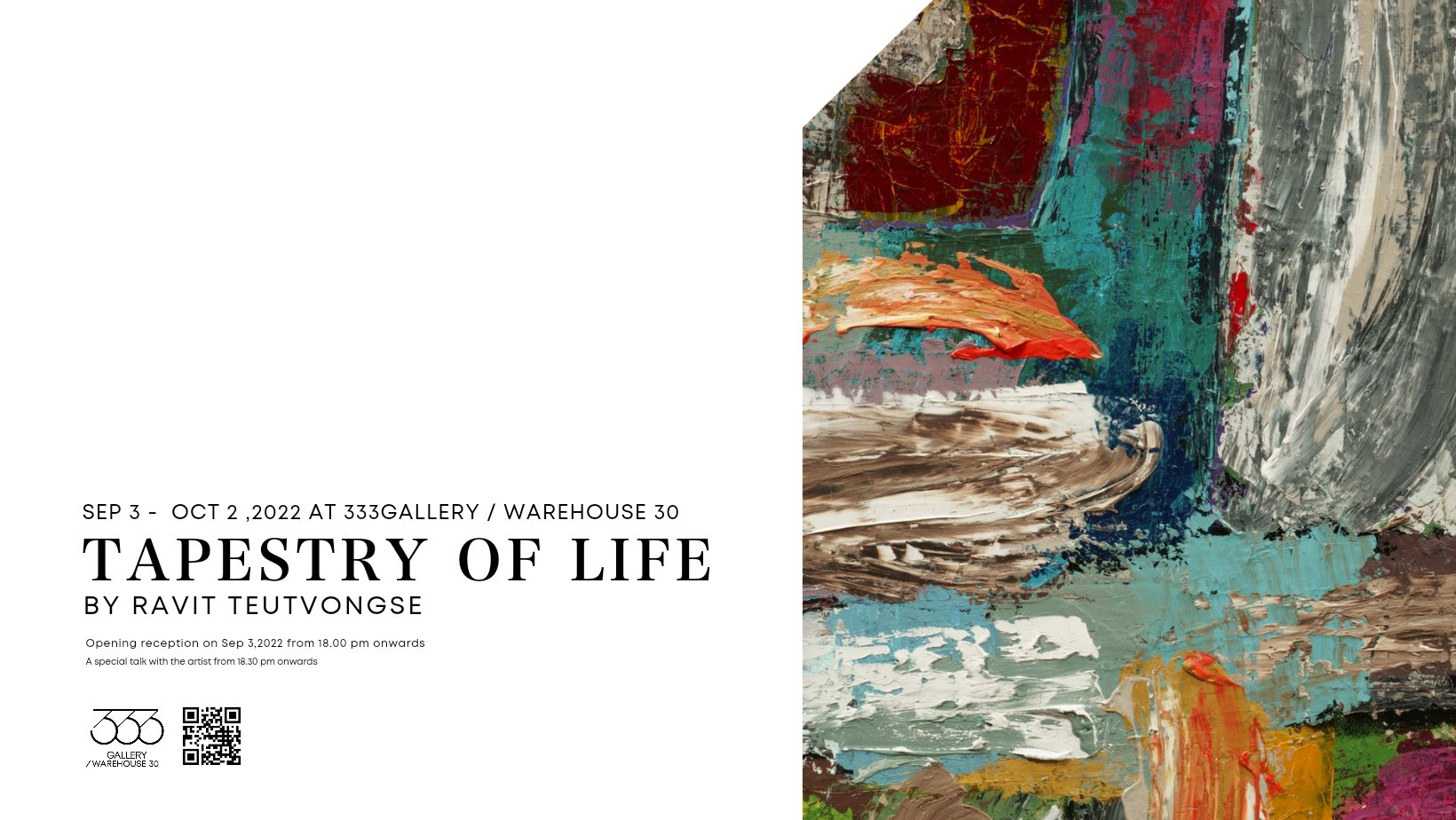 นิทรรศการศิลปะ Tapestry of Life โดย ปิ๊บ รวิชญ์ เทิดวงส์ เป็นเหมือนการบันทึกรวบรวมเรื่องราว อารมณ์ และความรู้สึกในแต่ละวันของตัวศิลปิน มาบอกเล่าผ่านงานศิลปะแบบนามธรรม ที่ไร้รูปทรง ไร้แบบแผน และไร้กฎเกณฑ์ ทั้งนี้ เขาพบว่าท้ายที่สุดเแล้ว ตัวตนที่แท้จริงอาจเกิดจากการปล่อยให้ทุกอย่างเป็นไปตามธรรมชาติ ไม่ต้องไปกำหนดและควบคุม เช่นเดียวกับการสร้างงานศิลปะ ที่เขาปล่อยให้อารมณ์และความรู้สึกในขณะนั้นพาเข้าสู่สภาวะลื่นไหล หรือ flow state จนเกิดเป็นการซ้อนทับของสีและพื้นผิว