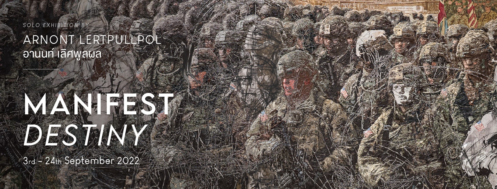 อีกนิทรรศการในย่านเดียวกันที่เริ่มต้นในวันเดียวกันก็คือ Manifest Destiny โดย อานนท์ เลิศพูลผล ที่นำเสนอจิตรกรรมสีน้ำมัน ถ่ายทอดภาพของคนหรือกลุ่มทหารที่มีความดิบเถื่อน ยืนเบียดเสียดแออัด มีใบหน้าโหดร้ายและสายตาว่างเปล่า คนเหล่านี้ต่างต้องแก่งแย่งเอาชีวิตรอด ความกระด้างของมู้ดผลงานถูกขับเน้นด้วยการวาดเส้นแบบเคลื่อนไหวฉับพลัน เพื่อสะท้อนปัญหาการเมือง ความสัมพันธ์ระหว่างประเทศ ความขัดแย้ง เเย่งชิงซึ่งผลประโยชน์ และการก่อสงครามของประเทศมหาอำนาจ