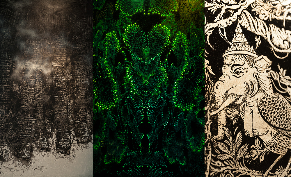 ร่องรอยชีวิตของชาวนา โดย นัฐวุฒิ กองลี / DISSECTION OF BREATHING โดย สิทธิพนธ์ เลาะไชยสงค์ / ลวดลายในธรรมชาติ โดย วิริยะพร จิตราภิรมย์