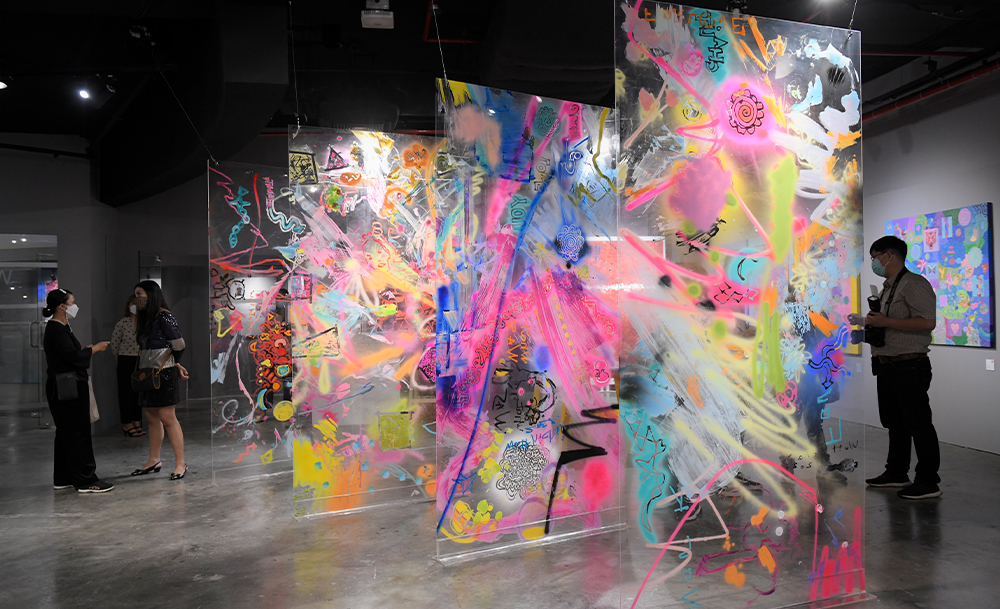 สัปดาห์สุดท้ายของนิทรรศการศิลปะนามธรรมที่เกิดจากการรวมตัวกันของ 3 ศิลปินมากความสามารถ ได้แก่ ชนิดา อรุณรังษี, วุฒิชัย บุญธรรม และ ชลิต นาคพะวัน ซึ่งจะมาร่วมกันสะท้อนมุมมองชีวิตต่อสิ่งที่ผ่านมาในอดีตอย่างงดงาม ผ่านชิ้นงานศิลปะนามธรรมเชิงสัญลักษณ์ด้วยสไตล์ที่แตกต่างกัน นำเสนอผ่านแผ่นอะคริลิก 4 แผ่นใหญ่ แขวนเรียงรายซ้อนกันเป็นเลเยอร์ โดยแต่ละแผ่นผ่านการแต่งแต้ม ทาสี ฉีด พ่น ลบ หรือ กลบสี ซึ่งเปรียบเหมือนชีวิตที่ผ่านเรื่องราวมามากมายมีหลายเลเยอร์ นอกจากจะเป็นความตั้งใจของศิลปินที่อยากให้ผู้ชมงานได้ปะทะกับความรู้สึกของตัวเองจากการได้สัมผัสกับงานศิลปะชิ้นนี้ในหลากหลายมิติของอารมณ์ มุมมอง และประสบการณ์ที่แตกต่างกันออกไปแล้วนั้น คนที่มาชมผลงานยังได้มีส่วนร่วมในการสร้างสรรค์งานศิลปะร่วมกับศิลปิน โดยสามารถเดินเข้าไปชมรอบ ๆ ผลงานได้ และหากไปยืนซ้อนในอะคริลิก ตัวเราก็จะเข้าไปกลายเป็นส่วนหนึ่งของงานศิลปะนั้นด้วย