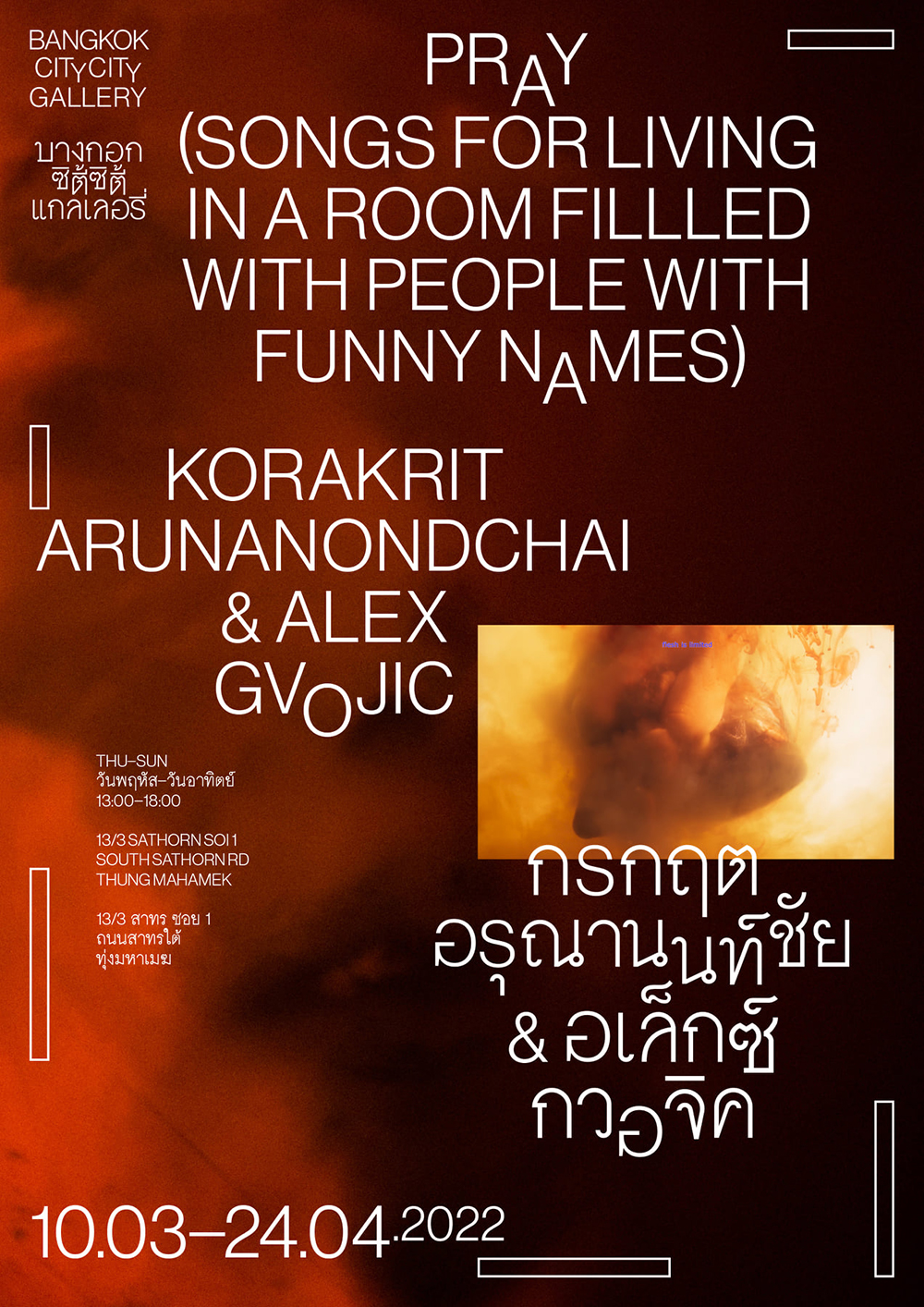 วันนี้ - 24 เม.ย. เวลาทำการ พฤหัสบดี - อาทิตย์ (ปิดวันจันทร์ - พุธ) 13:00 - 18:00 น. บางกอก ซิตี้ซิตี้ แกลเลอรี ซ.สาธร 1 MRT ลุมพินี