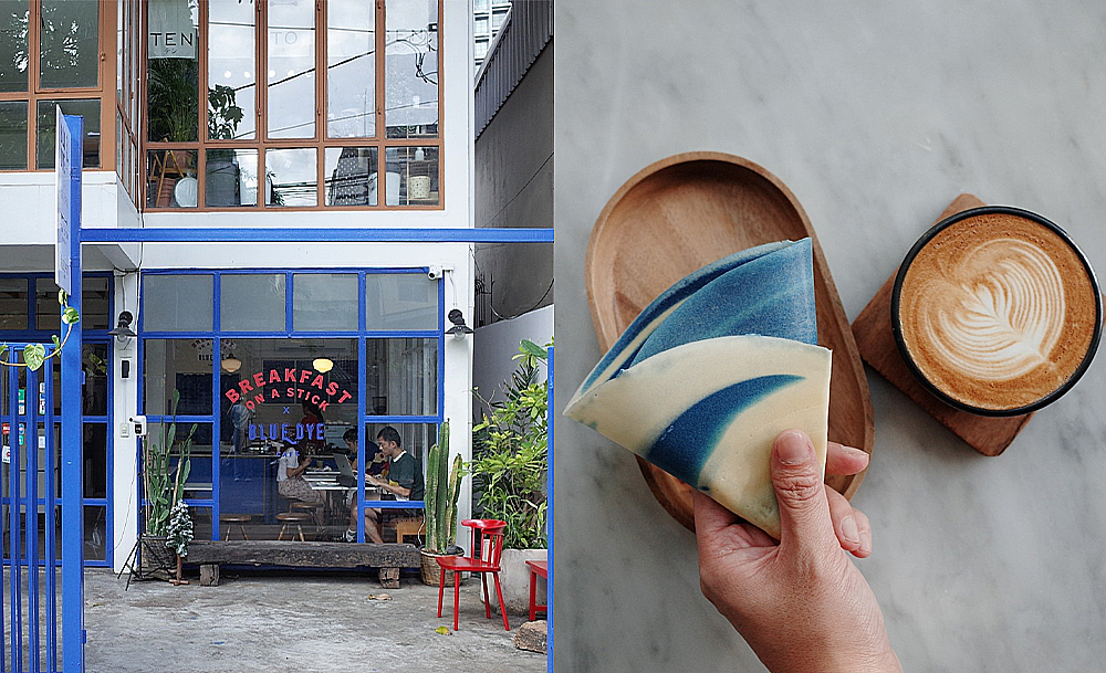 คาเฟ่สุดฮิปประจำ ซ.สุขุมวิท 36 ที่กลับมาเปิดอีกครั้งหลังปิดรีโนเวตไป โดยกลับมาคราวนี้เขาก็เพิ่มความพิเศษด้วยการไปจับมือคอลแลบฯ กับ Breakfast on a Stick ร้านเครปและวาฟเฟิลเสียบไม้สไตล์ฟู้ดทรักต์ที่ได้มาลงหลักปักฐานใจกลางย่านสุขุมวิทแห่งนี้ ซึ่งพอมาจับมือกับร้าน Blue Dye ทั้งที เมนูพิเศษของเขาจึงเป็นบรรดาเครปทั้งไส้คาวและหวาน ที่มีจุดเด่นเป็นแป้งเครปลายมาร์เบิลสีฟ้า เก๋สุดไปเลยแม่!