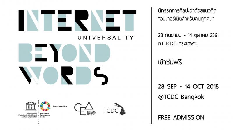 นี่คือนิทรรศการที่สร้างขึ้นมาเพื่อสื่อสารเรื่องเกี่ยวกับความเป็นสากลของอินเทอร์เน็ต ให้ออกมาในรูปแบบของศิลปะได้อย่างสร้างสรรค์กับงาน Internet Universality Beyond Words ผ่านมุมมองของศิลปินกว่า 11 คน ที่จะทําให้ผู้มาชมได้ประสบการณ์แปลกใหม่เกี่ยวกับโลกของอินเทอร์เน็ตมากมาย