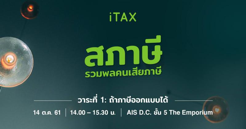 ใครที่รู้สึกว่าภาษีเป็นเรื่องงงงวยและยากเกินจะเข้าใจ เราแนะนําให้ไปงานนี้เลยกับงาน ถ้าภาษีออกแบบได้ ภาษีที่คุณอยากจ่ายหน้าตาเป็นแบบไหน ? ซึ่งทาง iTAX จะชวนผู้เสียภาษีทุกท่านทีสนใจในเรื่องนี้มาร่วมถกประเด็นนี้อย่างถึงแก่น ด้วยการดําเนินรายการโดย ดร.ยุทธนา ศรีสวัสดิ์ iTAX CEO และแขกรับเชิญพิเศษ ที่จะทําให้คุณเข้าใจในเรื่องภาษีมากขึ้นอีกแน่นอน