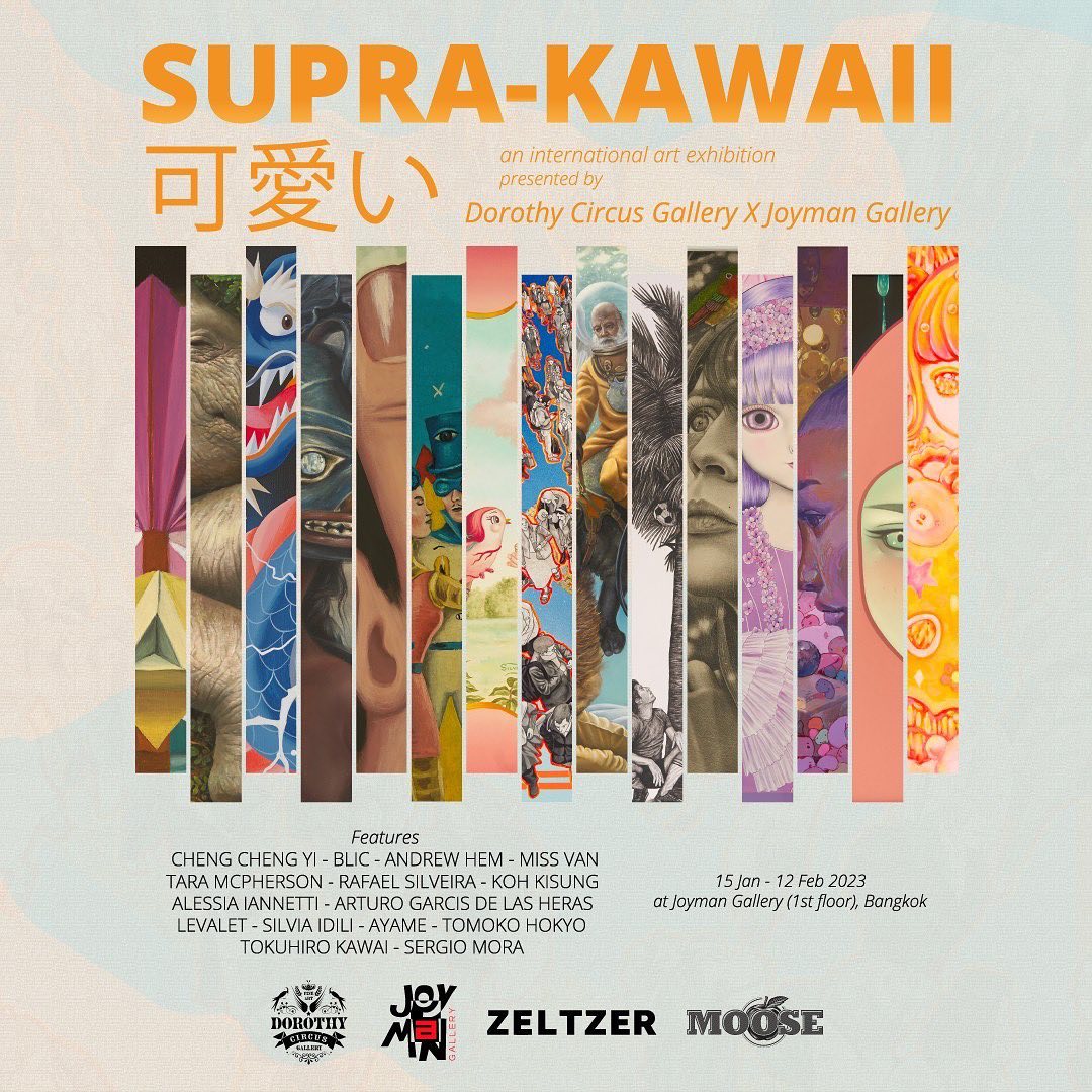ปิดท้ายสุดสัปดาห์นี้กันด้วยโปรเจกต์พิเศษจาก 2 แกลเลอรีที่เรารักอย่าง Dorothy Circus แกลเลอรีสุดฮิปสายเซอร์เรียลที่มีสาขาในอิตาลีและอังกฤษ กับ Joyman Gallery แกลเลอรีเจ้าโปรเจกต์สัญชาติไทย ที่เป็นที่ไว้วางใจของนักสะสมบ้านเรามานาน โดยนิทรรศการ SUPRA-KAWAII เป็นงานจัดแสดงผลงานระดับนานาชาติ ที่รวมเอาผลงานของศิลปินมากหน้าหลายตา (และกำลังอยู่ในช่วง 'ขาขึ้น' สุด ๆ ทั้งนั้น) มารวมไว้ในที่เดียว ภายใต้ธีม 'คาวาอี้' สายเสพศิลป์ที่อยากมาเล็งงานใหม่ ๆ ของนักวาดที่น่าจับตา ขอให้มาแวะงานนี้เลย!