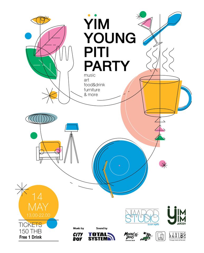 งานมาร์เก็ตอบอุ่น ๆ มู้ดดี ฟีลเริ่ด ที่เราเชื่อว่าชาวซอยมิลค์ต้องชอบ โดยเฉพาะสายวินเทล โดย YIM Young Piti Party เขารวมเอาร้านเพื่อน ๆ มาออกงานด้วยกัน มีทั้งขายเสื้อผ้า ขายเฟอร์นิเจอร์ ทำเวิร์กชอปศิลปะ เปิดคาเฟ่ ขายอาหาร-เครื่องดื่ม ในบรรยกาศแบบ Mid-century Modern ซึ่งก็แน่นอนว่าฟีลมาขนาดนี้แล้ว ร้านแผ่นเสียงราคาพิเศษก็ต้องขอแจมด้วยเช่นกัน ดนตรีภายในงานดูแลโดย City Boy บอกเลยว่าเพลินแน่ ๆ