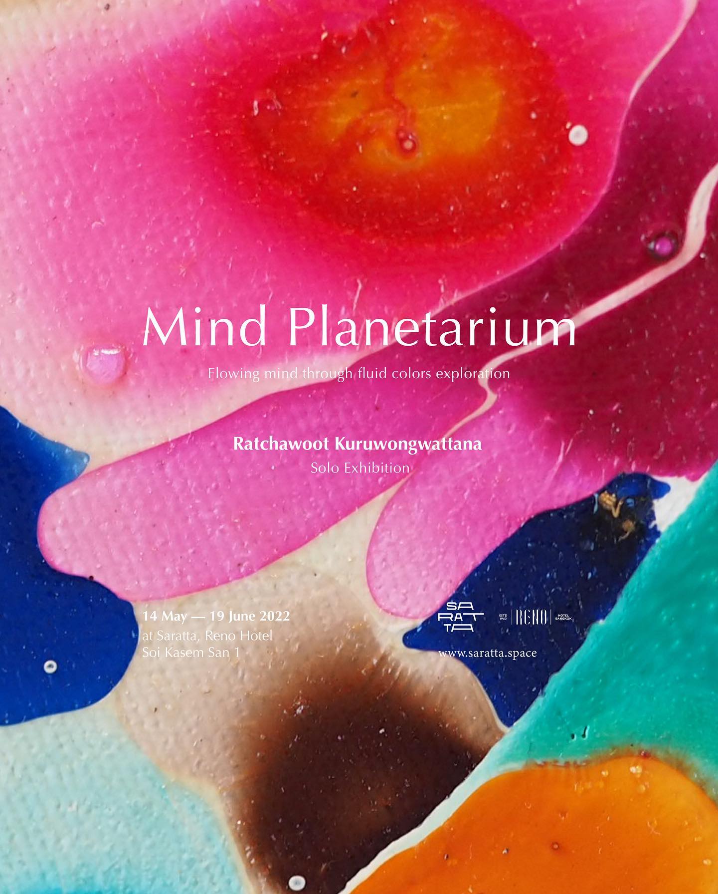 นิทรรศการ Mind Planetarium หรือ จักรวาลของจิตใจ โดย ราชวุธ คุรุวงศ์วัฒนา เป็นโชว์เคสที่ชวนผู้ชมไปสำรวจคุณค่าความงามของความอิสระตามธรรมชาติ ที่เกิดขึ้นโดยฉับพลัน จากกระบวนการทำงาน ณ ขณะนั้น ผ่านมุมมองเรื่องคติภูมิจักรวาล กับการตั้งคำถามเกี่ยวกับการเปลี่ยนแปลงอันรวดเร็วของโลกในยุคปัจจุบัน นำเสนอผ่านเทคนิคสีเลื่อมพรายตามขนบจิตรกรรมไทย โดดเด่นที่การใช้สีนำเสนอการเกิดขึ้น ตั้งอยู่ และดับไป ตลอดจนความเปลี่ยนแปลงและผลลัพธ์อันคาดไม่ถึง
