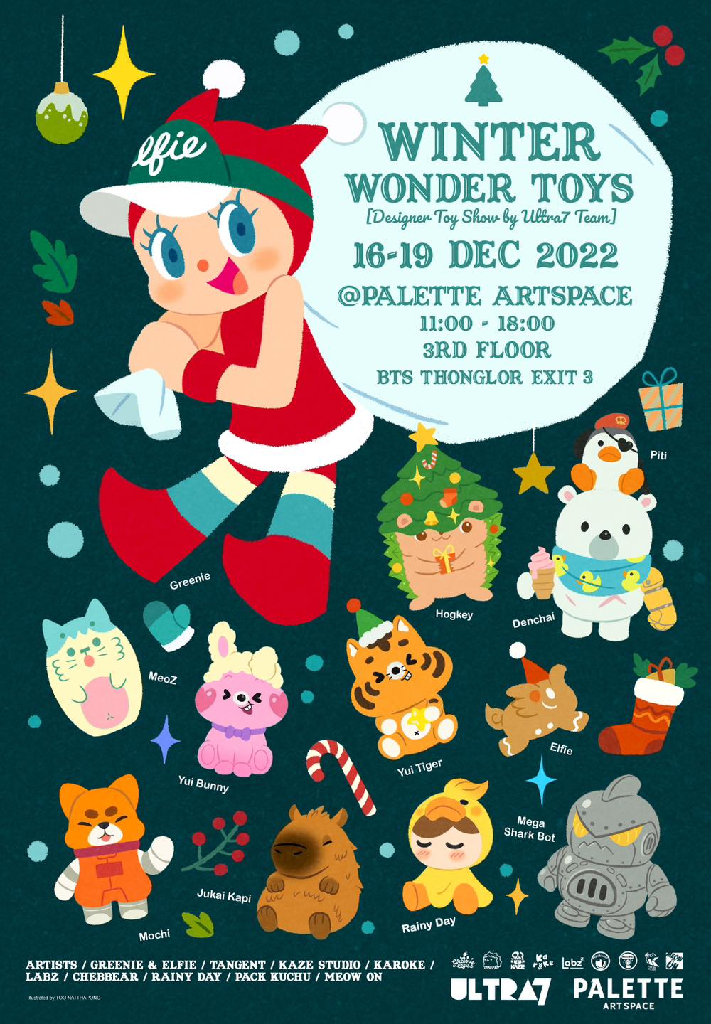 คนรักของเล่นและอาร์ตทอยต่าง ๆ ต้องแวะที่งานนี้เลยจ้า Winter Wonder Toys งานแสดงฟิกเกอร์และดีไซเนอร์ทอยของกลุ่ม Ultra7 ที่มาในธีมฤดูหนาว ต้อนรับเทศกาลแห่งความสุขที่กำลังจะมาถึง แถมยังมีชิ้นงานประเภท Giclee Print และสินค้าที่ระลึกอีกมากมายมาวางขายด้วย สามารถแวะพูดคุย เยี่ยมชม และพบปะกันในบรรยากาศแบบสบาย ๆ เป็นกันเองกับศิลปินได้เลย