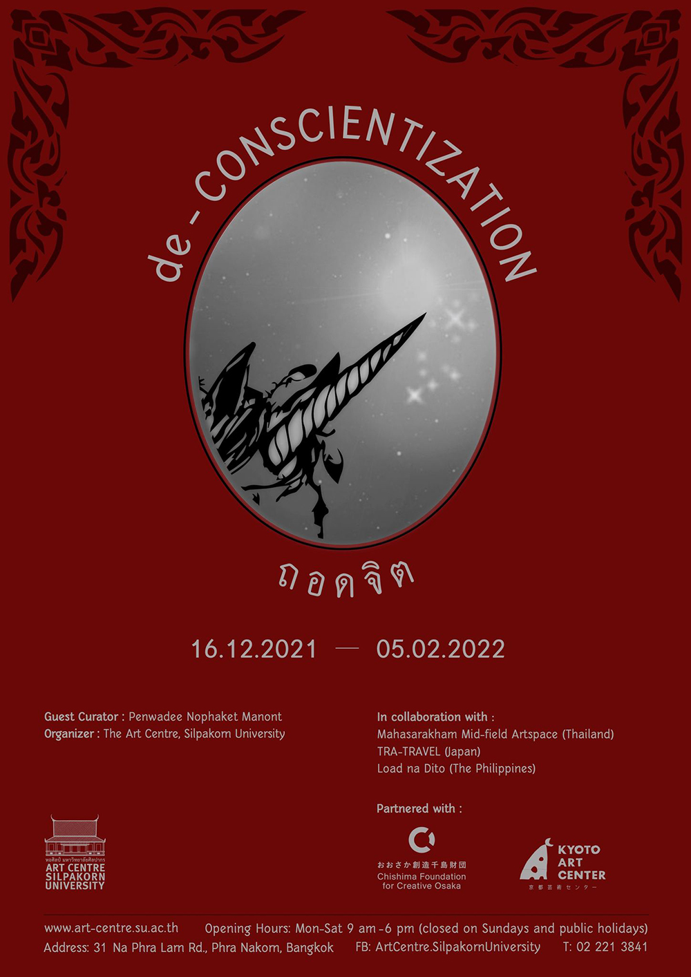 de-CONSCIENTIZATION จึงเป็นนิทรรศการที่จัดขึ้นเพื่อจงใจสำรวจและท้าทายผ่านการตั้งคำถามต่อจิตสำนึกและจิตไร้สำนึกของคนในสังคม เมื่อถึงคราวต้องต่อสู้กับความหดหู่สิ้นหวัง หรือกระทั่งความเป็นความตาย เมื่อทั่วโลกกำลังเผชิญวิกฤติครั้งใหญ่ที่สุดครั้งหนึ่งของมนุษยชาติ 'จิต' ของเราที่สมควรแตกต่างจากสัตว์โลกชนิดอื่น ทำงานอย่างไรในเชิงวิพากษ์? สามารถตั้งคำถาม สำรวจ สะท้อนถึงรากเหง้าของปัญหา และนำมาซึ่งการสร้างความเปลี่ยนแปลงเชิงโครงสร้างได้หรือไม่? การตระหนักรู้ร่วมกันจักก่อให้เกิดกระแสขบถในผู้ถูกกดขี่ได้เพียงใด?