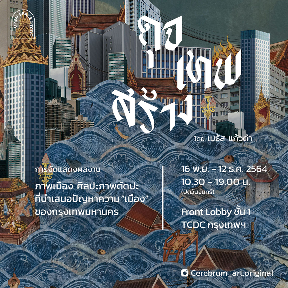 นิทรรศการที่นำเสนอปัญหาความ 'เมือง' ของกรุงเทพมหานคร ผ่านภาพจำลองเมืองที่ถูกขนานนามว่าเป็นเมืองเทพสร้าง ในรูปแบบของผลงานคอลลาจขนาด 500 x 160 ซม. ที่บอกเล่าเรื่องราวผ่านสายตาของตัวละครในวรรณคดีไทย ผู้จำแลงกายลงมาอาศัยในเมืองแห่งนี้เช่นเดียวกับคนเมืองอีกหลายคน และต้องประสบพบเจอกับปัญหาที่แฝงอยู่ภายใต้โฉมหน้าที่ดูสวยงามตระการดุจสวรรค์ ซึ่งทำให้การใช้ชีวิตเป็นเรื่องยากอย่างไม่น่าเชื่อ