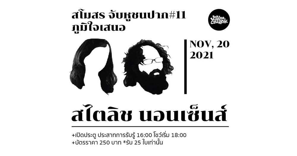 อิเวนต์ดนตรีประจำสัปดาห์ที่ จับหูชนปาก Japhoochonpak #11 โดยสัปดาห์นี้เขาจะพาวงดูโอ้สุดชิค Stylish Nonsense มาปล่อยพลังงานบวกให้คอเพลงได้รับกันเต็ม ๆ ผ่านการไลฟ์ดนตรีสด ใครรู้ตัวว่าเป็นแฟนคลับวงนี้ก็ไปเจอกันจ้า