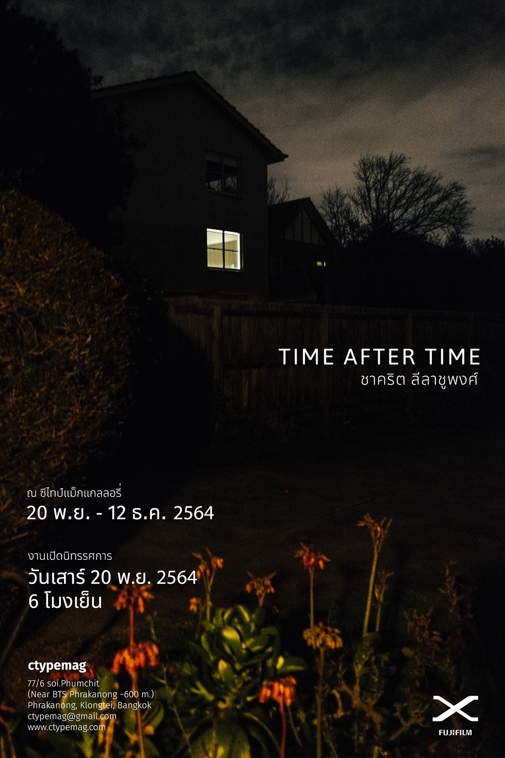 งาน TIME AFTER TIME ประกอบด้วยภาพถ่ายที่ชวนให้ครุ่นคิดสงสัย สถานการณ์โดดเดี่ยวแปลกแยก ไม่มั่นคง หากแต่เงาทะมึนหรือความวังเวงยามโพล้เพล้นั้นเต็มไปด้วยความสวยงามที่เย็นเยียบจนไม่อาจละสายตาจากมันได้ ชาคริตเล่าเรื่องที่เขาเดินทางไปออสเตรเลีย ที่เมลเบิร์นและเมืองต่าง ๆ มากมาย พบเจอหลากหลายเรื่องราวและผู้คน กลายเป็นภาพชุดที่เต็มไปด้วยอารมณ์โหยหาที่พักพิงและการดิ้นรนเอาชีวิตรอดในห้วงอารมณ์ที่เต็มไปด้วยคำถามมากมาย