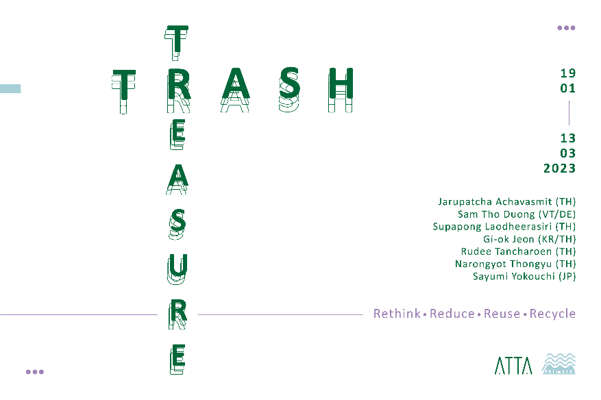 นิทรรศการกลุ่ม Trash : Treasure จะพาผู้ชมไปสำรวจขยะและการจัดการขยะอย่างน่าสนใจ ศิลปินและนักออกแบบได้มีการใช้วัสดุต่าง ๆ ทั้งวัสดุใช้แล้ว และเหลือใช้ เพื่อนำมาใช้สร้างผลงานให้เกิดผลกระทบต่อสิ่งแวดล้อมน้อยที่สุด โดยชูคอนเซปต์ที่ว่า 'ขยะของคนคนหนึ่งเป็นสมบัติของอีกคนหนึ่ง' พูดให้ง่ายก็คือ ศิลปินทุกคนได้เปลี่ยนขยะให้เป็นของล้ำค่า (ตามชื่อนิทรรศการ) ได้อย่างน่าสนใจ