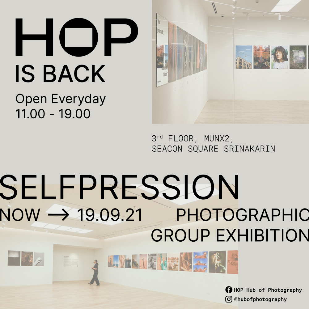 HOP หรือ Hub Of Photography ศูนย์กลางงานภาพถ่ายแบบครบวงจรที่แรกของประเทศไทย กลับมาเปิดให้บริการอีกครั้ง พร้อมขยายเวลาการจัดนิทรรศการ Seflpression | The Representation of 100 Photographers Identity ที่จัดแสดงภาพถ่าย 100 ภาพ จากช่างภาพ 100 คน ที่จะทำให้เราได้เห็นนิยามอันหลากหลายของคำว่า 'ตัวตน' ที่พวกเขาร่วมกันตีความตัวตนในรูปแบบต่าง ๆ และถ่ายทอดผ่าน Self-portrait ภาพสิ่งของที่พวกเขารัก สถานที่แห่งความทรงจำ หรือมุมส่วนตัวของแต่ละคนที่ไม่เคยถูกเปิดเผยมาก่อน