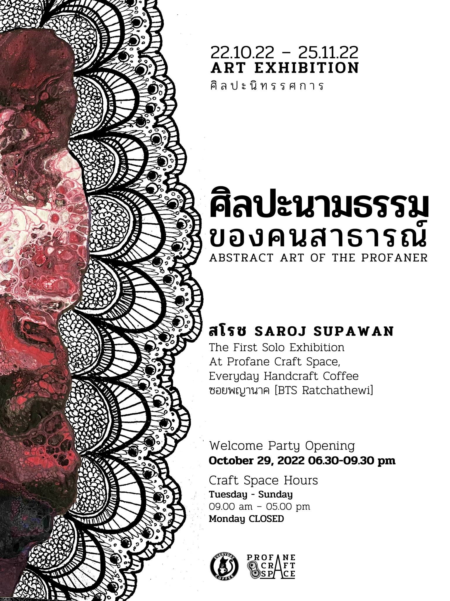 มากันที่อิเวนต์งานศิลป์อย่าง Abstract Art of The Profaner หรือ ศิลปะนามธรรมของคนสาธารณ์ นิทรรศการเดี่ยวครั้งแรกของ Saroj Supawan ซึ่งถือเป็นการเปิดตัวคราฟต์สเปซใหม่ ๆ กลางใจเมืองไปด้วยในตัวเลย