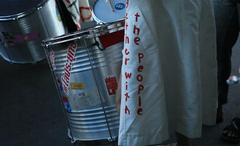 เสียงกลองที่ถูกตีด้วยกลุ่มคนที่หลากหลาย แรงสั่นสะเทือนจากจังหวะกลอง สร้างความรู้สึกฮึกเหิม ก่อเกิดกำลังใจในระหว่างที่เราทุกคนต่างอยู่บนถนน เพื่อเปล่งเสียง แสดงพลังของประชาชนผู้ต้องการประชาธิปไตยที่แท้จริง แรงสั่นสะเทือนของกลอง ทำหน้าที่เป็นเพื่อนปลอบประโลม เสียงกลองที่เต็มไปด้วยความรู้สึก ส่งต่อกันไปไม่สิ้นสุด จนกว่าความยุติธรรมจะเกิดขึ้นจริง การจับไม้ตีกลองของเหล่าราษฎร์ดรัมส์คือการแสดงออกถึงความต้องการมีส่วนร่วมในการเรียกร้องประชาธิปไตย เป็นความต้องการแบบเดียวกับผู้ชุมนุม และกลองคือเครื่องมือส่งผ่านความรู้สึก ส่งต่อแรงบันดาลใจ ส่งต่อจังหวะ สร้างความหนักแน่นให้ทุกคนยืนหยัดต่อสู้