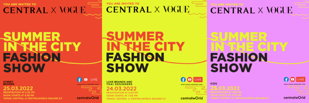 อิเวนต์แฟชั่นโชว์สุดยิ่งใหญ่รับเทรนด์ซัมเมอร์ที่เนรมิตรันเวย์มาไว้ใจกลางกรุงเทพมหานคร พร้อมขนแบรนด์ไฮเอนชั้นนำระดับโลก แบรนด์ไทยดีไซน์เนอร์ และแบรนด์เสื้อผ้าเด็กกว่า 60 แบรนด์ดัง มาให้เลือกชอปและอัปเดตเทรนด์กันอย่างจุใจ จัดเต็มกับ 3 รอบการแสดงแฟชั่นโชว์ ทั้งรันเวย์ LUXE Brands and Thai Designers Fashion Show ที่รวมแบรนด์แฟชั่นไฮเอนด์ทั้งไทยและต่างประเทศ มาไว้ในรันเวย์เดียวกัน, Kids Fashion Show แฟชั่นโชว์เสื้อผ้าเด็กจากแบรนด์ดัง และปิดท้ายด้วย Street Brands Fashion Show สตรีตแฟชั่นสุดชิค พร้อมพบกับไฮไลต์พิเศษตลอด 2 วันเต็ม ที่จะมาสร้างสีสันและแรงบันดาลใจให้กับเหล่าบรรดาแฟชันนิสต้าได้อัปเดตเทรนด์ฮิตรับลมร้อนกันกลางใจเมือง