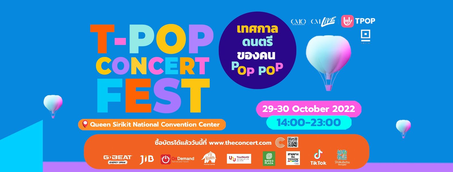 อีกหนึ่งงานใหญ่ของวงการดนตรีสัปดาห์นี้คือ T-POP Concert Fest ปรากฏการณ์รวมตัวศิลปินฮอตประจำ พ.ศ. นี้ โดยไลป์อัปศิลปินก็เช่น 4EVE, Billkin, PP Krit, Nont Tanont, UrboyTJ, The TOYS, Bowkylion, ATLAS, Ice Paris, JJ, PiXXiE, LAZ1, WAII, Mew Suppasit, Polycat, Lipta, Stamp, Mean, Violette Wautier, Zom Marie, Youngohm, Patrickananda, F.HERO, Twopee x XOXO, Jeff Satur, Zee Pruk + NuNew และ ALLY (และอีกเพียบ!)