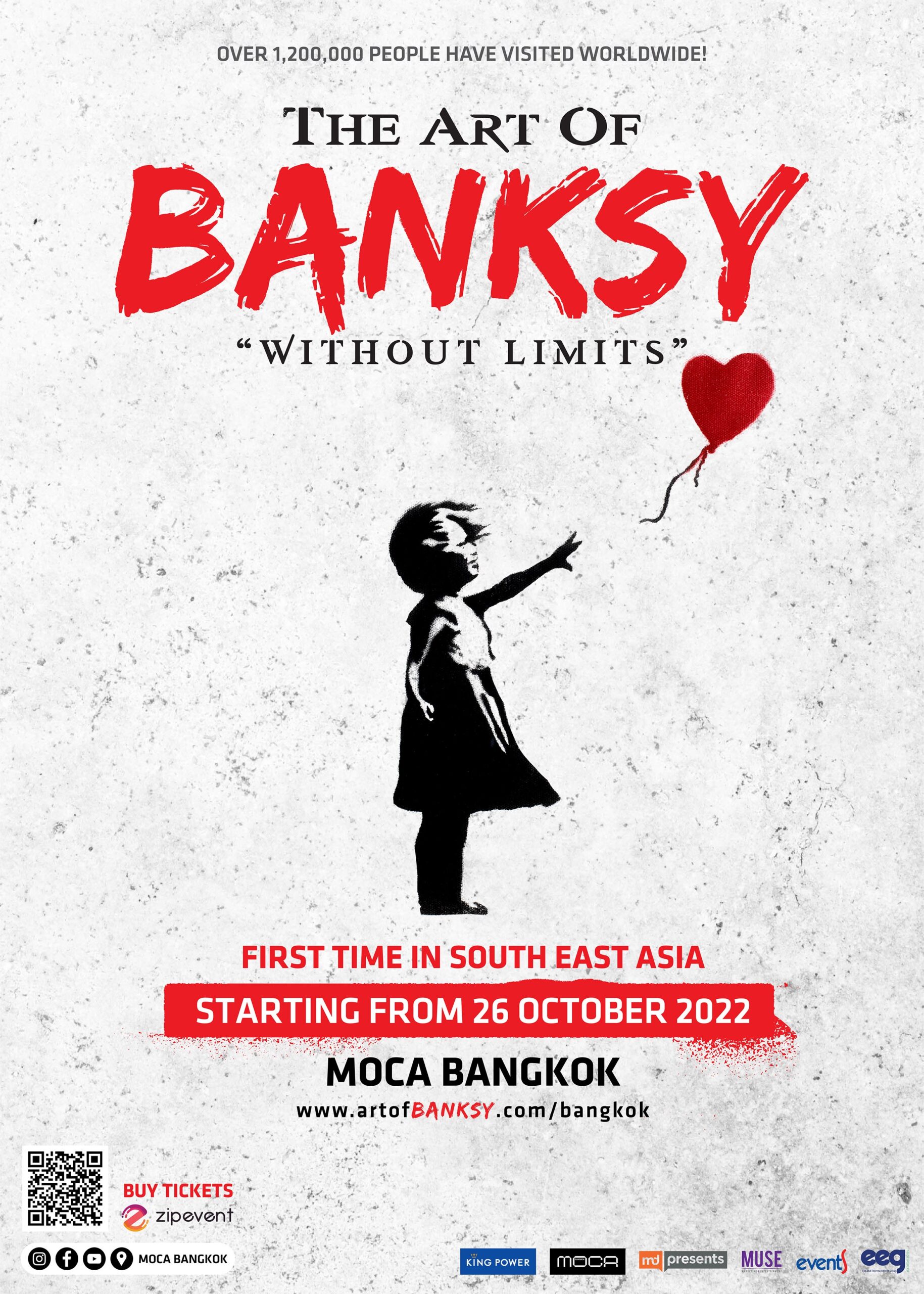 เริ่มต้นอิเวนต์ดี ๆ สุดสัปดาห์นี้กันด้วยข่าวดีสำหรับสายสตรีตอาร์ต (ที่เริ่มไปก่อนหน้านี้แล้ว 1 วัน) เพราะศิลปินดังจากอังกฤษอย่าง Banksy เขาส่งผลงานจำนวนมากมาเปิดเป็นนิทรรศการใหญ่ The Art of Banksy: "Without Limits" แบบเดียวกับที่จัดมาแล้วหลายแห่งทั่วโลก เป็นครั้งแรกในเอเชียตะวันออกเฉียงใต้