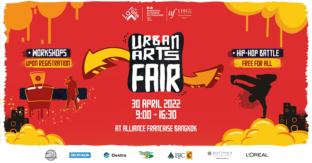 ไปเรียนรู้เกี่ยวกับจังหวะและการสร้างสรรค์เพลงฮิปฮอปไปกับนักดนตรีที่มีชื่อเสียงระดับโลก Matteo (Chinese man) ชมการสร้างสรรค์ผลงานชิ้นใหม่แบบสด ๆ บนกำแพงสมาคมฝรั่งเศส กรุงเทพฯ โดยศิลปินแนวสตรีต ปกรณ์ ธนานนท์ และร่วมส่งเสียงเชียร์ใน BATTLE HIP HOP อิเวนต์ที่รวบรวมนักเต้นฮิปฮอปที่เก่งที่สุดจากทั่วประเทศไทยมาไว้ที่นี่!