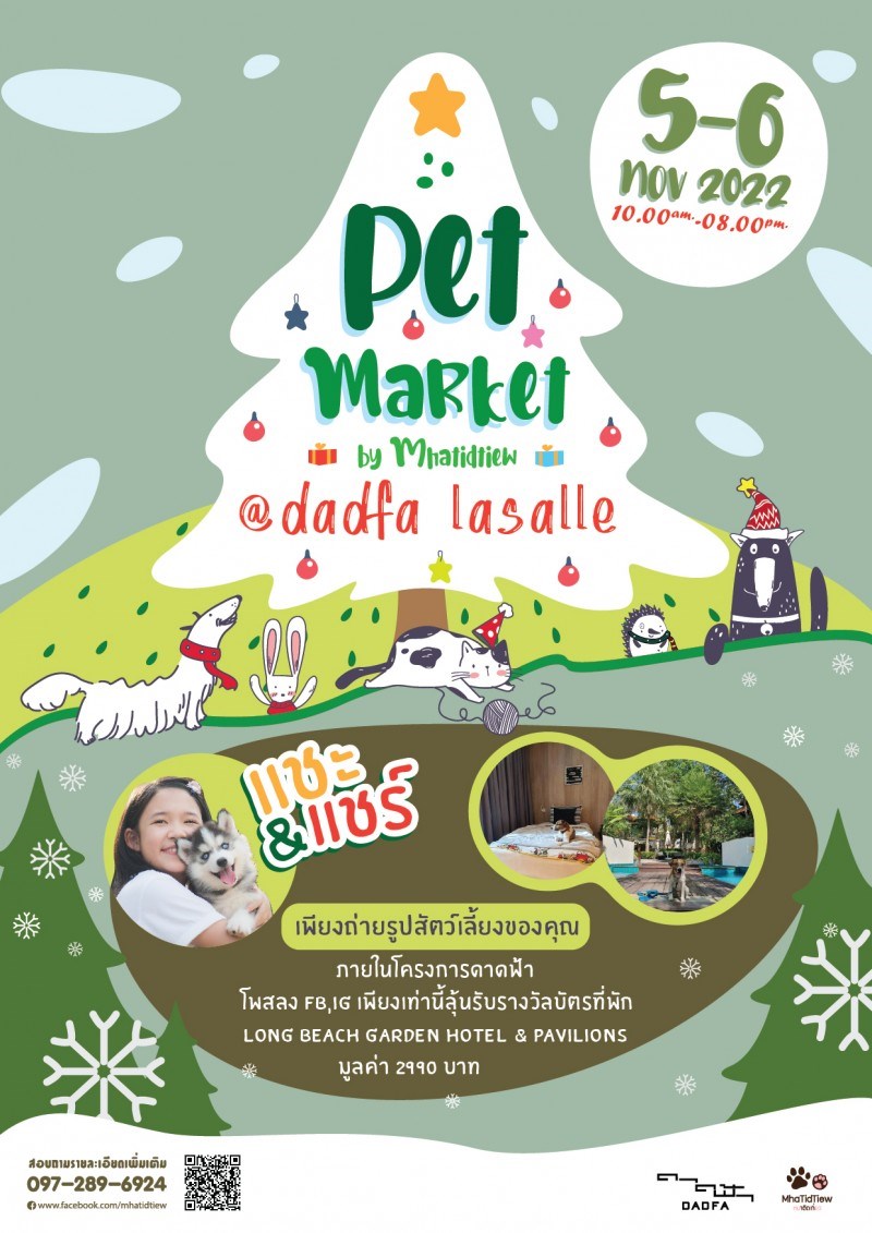 มากันที่อีกมาร์เก็ต กับมาร์เก็ตสัตว์เลี้ยง Pet Market by หมาติดเที่ยว ที่รวบรวมสินค้าและบริการเกี่ยวกับสัตว์เลี้ยงกว่า 20 ร้านค้า ให้คุณพาน้อง ๆ สี่ขามาเที่ยว ถ่ายภาพกับมุมสวย ๆ และลุ้นรับของรางวัลติดไม้ติดมือกลับบ้านไปอีก
