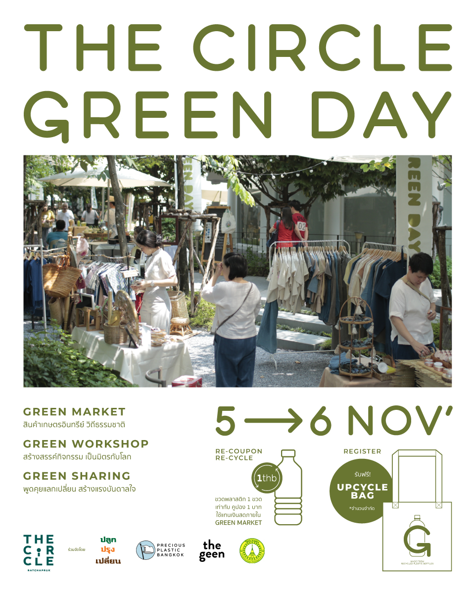 มากันมาร์เก็ตใส่ใจสิ่งแวดล้อมที่ The Circle Ratchapruk กับชื่อที่ซิมเพิลและครอบคลุมคอนเซปต์ทุกอย่างอย่าง The Circle Green Day โดยเขารวบรวมร้านค้าที่ขายสินค้าปลอดสารเคมี สินค้าที่ทำมาจากธรรมชาติ อาหารสด ของใช้ในบ้าน และของใช้ในชีวิตประจำวัน แถมยังมีเวิร์กชอปและเซชชันดี ๆ ให้เข้าร่วมด้วย