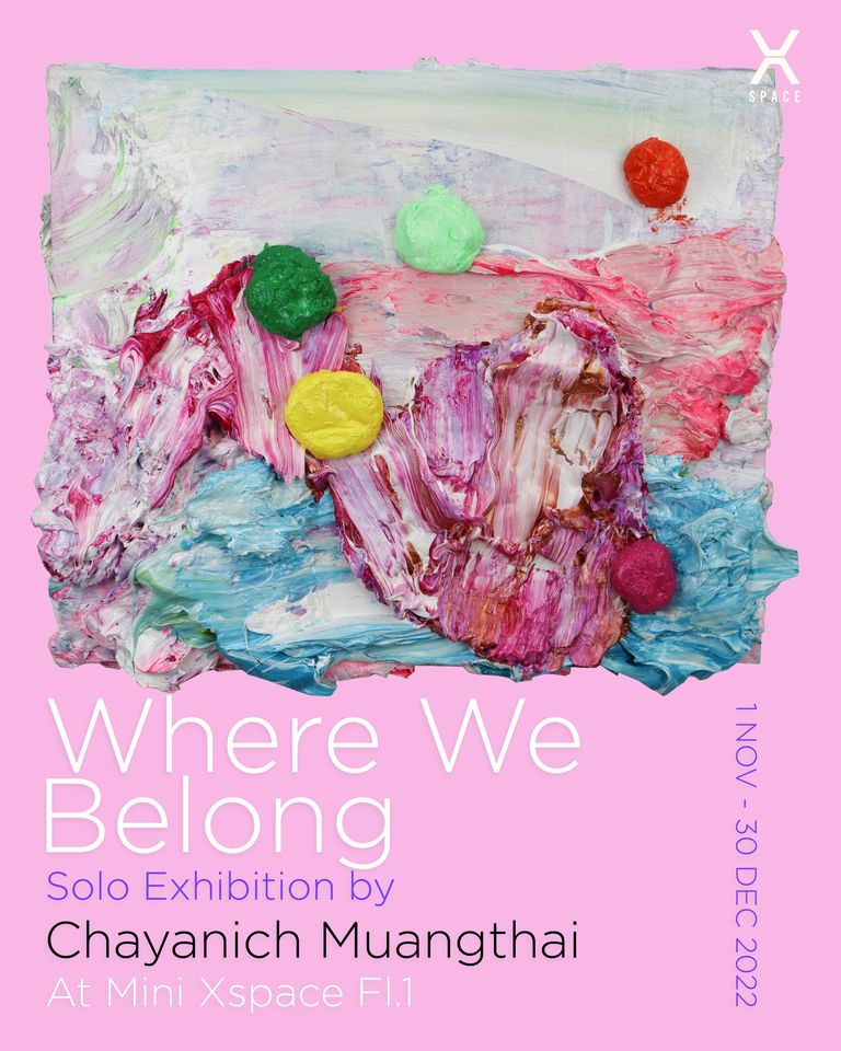 Where We Belong เป็นนิทรรศการที่บอกเล่าเรื่องราวในสถานการณ์โควิด นำมาสู่แสง สี และประสบการณ์ ที่ถูกรังสรรค์ขึ้นเป็นงานแสดงเดี่ยวชุดใหม่ ครั้งที่ 5 ของศิลปิน ชญานิษฐ์ ม่วงไทย ที่เราเชื่อเหลือเกินว่าน่าจะทำให้ผู้ชมได้ลองมองภาพวาดนามธรรมในอีกมุมมองหนึ่ง