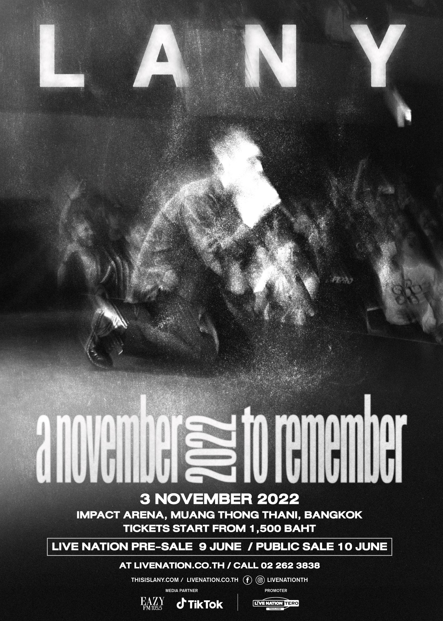 สมชื่อกรุงเทพฯ เมืองคอนเสิร์ต กับคอนเสิร์ตที่หลายคนรอคอย LANY A NOVEMBER TO REMEMBER TOUR ของวงอินดี้ป็อปจากลอสแองเจลิส ที่มีฐานแฟนคลับสุดแน่นในบ้านเรา ก่อนหน้านี้ ในช่วงโควิด พวกเขาเคยเยียวยาหัวใจแฟน ๆ ด้วยการโชว์ผ่านไลฟ์สตรีม One Night Only Global Livestream มาแล้ว คราวนี้ถือเป็นโอกาสพิเศษจริง ๆ ที่เราจะได้บอกลาเจ้าโควิดตัวร้าย และต้อนรับศิลปินที่รอคอยมานานซะที