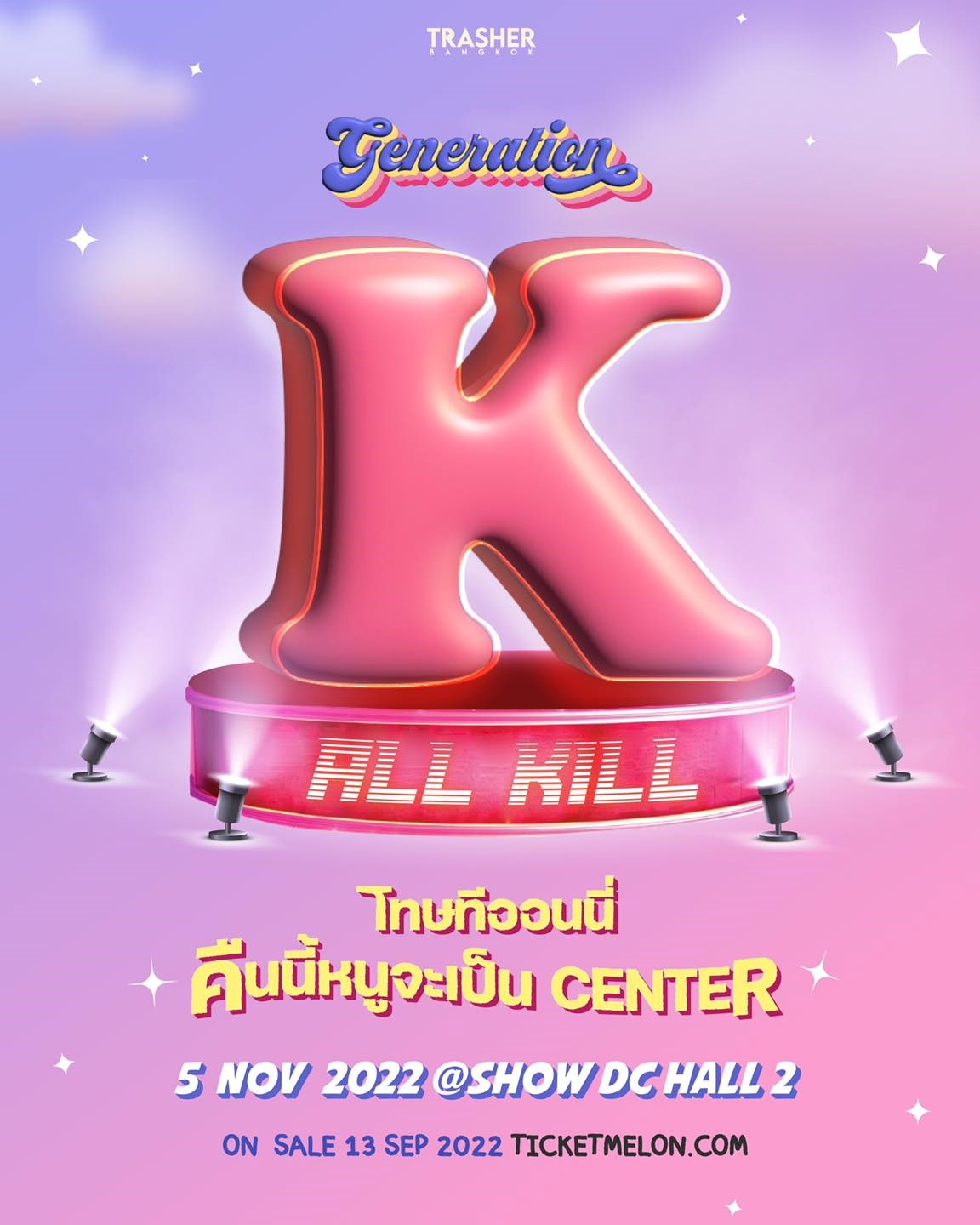 เอาล่ะ เชื่อเหลือเกินว่านี่คือแนวทางปาร์ตี้ที่ถูกจริตชาวซอยมิลค์กว่าครึ่ง โดย K : ALL KILL โทษทีออนนี่ คืนนี้หนูจะเป็น Center คือปาร์ตี้รวม K - Pop Setlist จากทุกตึก บอกเลยว่ามาได้ทุกไลน์เต้น