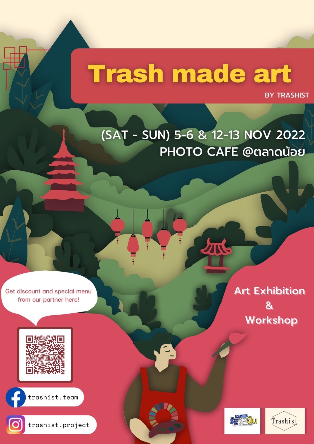 Trash Made Art by Trashist คือนิทรรศการศิลปะจากขยะ ของทั้งศิลปะหน้าใหม่และมือเก๋าเอาไว้ในที่เดียว มีเวิร์กชอป กิจกรรม และเมนูพิเศษให้ลอง