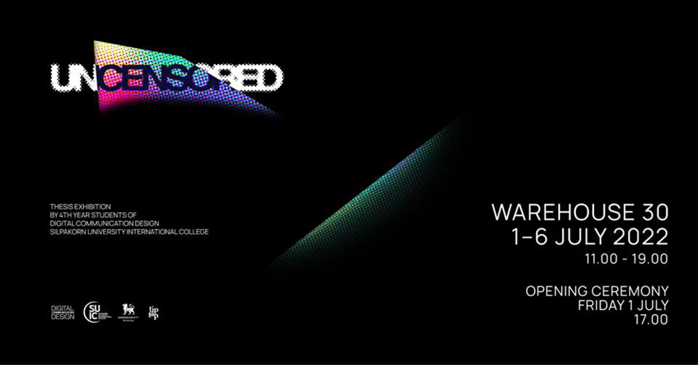 นิทรรศการการจัดแสดงผลงานของนักศึกษาปีที่ 4 คณะวิทยาลัยนานาชาติ สาขาออกแบบสื่อสารดิจิตัล(DCD) มหาวิทยาลัยศิลปากรประจำปี 2022 ที่จะชวนเราไปสำรวจความหลากหลายผ่านงานศิลปะอันแตกต่างและตัวตนที่รอวันถูก Uncensored ใครอยากไปสำรวจความคิดของคนรุ่นใหม่ ก็ไปเจอกันที่งานนี้ได้เลยนะ