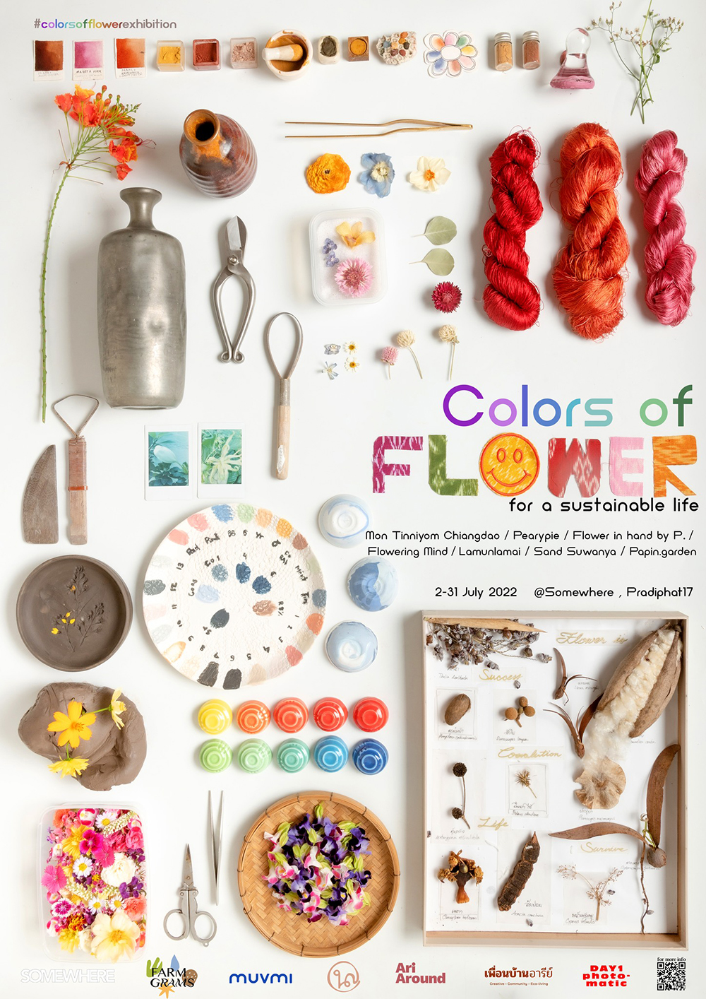 นิทรรศการกลุ่มจาก 7 ศิลปิน ผู้มีความตั้งใจในการต่อยอดความสวยงามของดอกไม้สู่นิทรรศการที่นำเสนอสีสันจากดอกไม้ ไปจนถึงเวิร์กชอปและกิจกรรมต่าง ๆ เดี่ยวกับดอกไม้ เพื่อกระตุ้นให้ผู้ชมตระหนักถึงความสำคัญของความยั่งยืนทางสิ่งแวดล้อม โดยศิลปินที่มารวมตัวกันในงานนี้ก็ประกอบไปด้วย Mon Tinniyom Chiangdao, Pearypie, Floweringmind.project, Flower in hand by P., Lamunlamai, Sand Suwanya และ Papin.garden