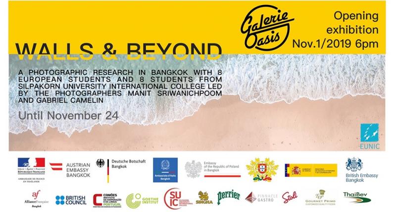 นิทรรศการจัดแสดงภาพถ่ายที่เป็นการร่วมมือกันระหว่างสถาบันส่งเสริมวัฒนธรรมยุโรปประจำประเทศไทย (EUNIC), Galerie Oasis วิทยาลัยนานาชาติและมหาวิทยาลัยศิลปากร ผลงานที่นำมาจัดแสดงจึงเป็นฝีมือของเหล่าเด็ก ๆ นักศึกษาชาวไทย, ฝรั่งเศส, ออสเตรีย, เยอรมัน, โปแลนด์, โปรตุเกส, สเปน และอังกฤษ โดยจับคู่เป็นจำนวน 8 คู่เพื่อถ่ายภาพภายใต้หัวข้อ Walls & Beyond ในเขตต่าง ๆ ของกรุงเทพฯ ภายในเวลา 15 วัน นิทรรศการนี้จะจัดยิงยาวไปถึงวันที่ 24 พ.ย.