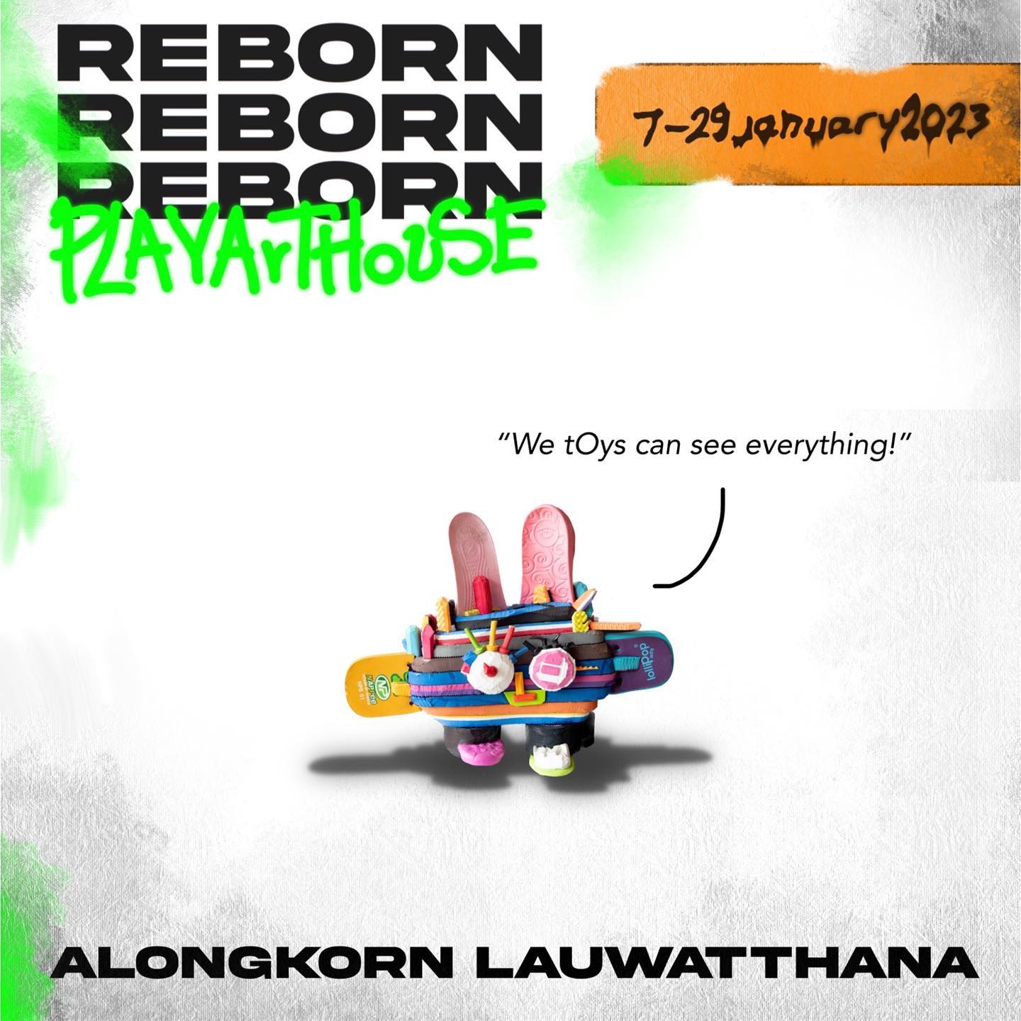 REBORN นิทรรศการจากจินตนการและการสร้างสรรค์ผลงาน โดย อลงกรณ์ หล่อวัฒนา ตามไอเดียตั้งต้นที่ว่า เมื่อเราได้เดินทางพร้อมรองเท้าคู่โปรด จนมาถึงเวลาที่ต้องโบกมือลากับรองเท้าคู่เดิม ก็จะเสียดายที่ต้อง 'ทิ้งเพื่อนร่วมทาง' ไปอย่างง่ายดาย และการนำเพื่อนเก่ามาปัดฝุ่น สร้างสรรค์ให้กลับมามีชีวิตใหม่ จะนำไปสู่ความสุขครั้งใหม่