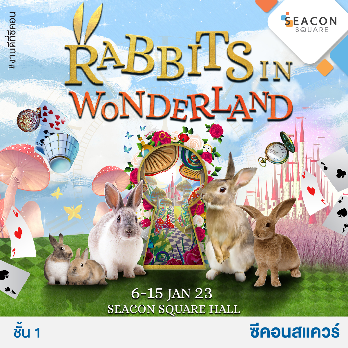 Seacon Square ชวนทุกคนมากระโดดดึ๋งรับความสุขในดินเเดนมหัศจรรย์ต้อนรับปีกระต่ายด้วยความน่ารักสดใสกับเจ้ากระต่ายน้อยเเสนซุกซน! พบกับราชากระต่ายสายพันธุ์ยักษ์ Flemish Giant ค้นหาทางออกเขาวงกตไพ่ปริศนา ชุดน้ำชากับกระต่ายยักษ์ เซลฟี่กับ Wonderland Cosplay รวมถึงการชิมชอปร้านดังปังไม่ไหว อย่างร้าน Bearhouse, Usagyuuun, KIKI BABY, Kiddo Pacific เเละ L.O.L Surprise Thailand By Nichiworld จุก ๆ ไปจ้า