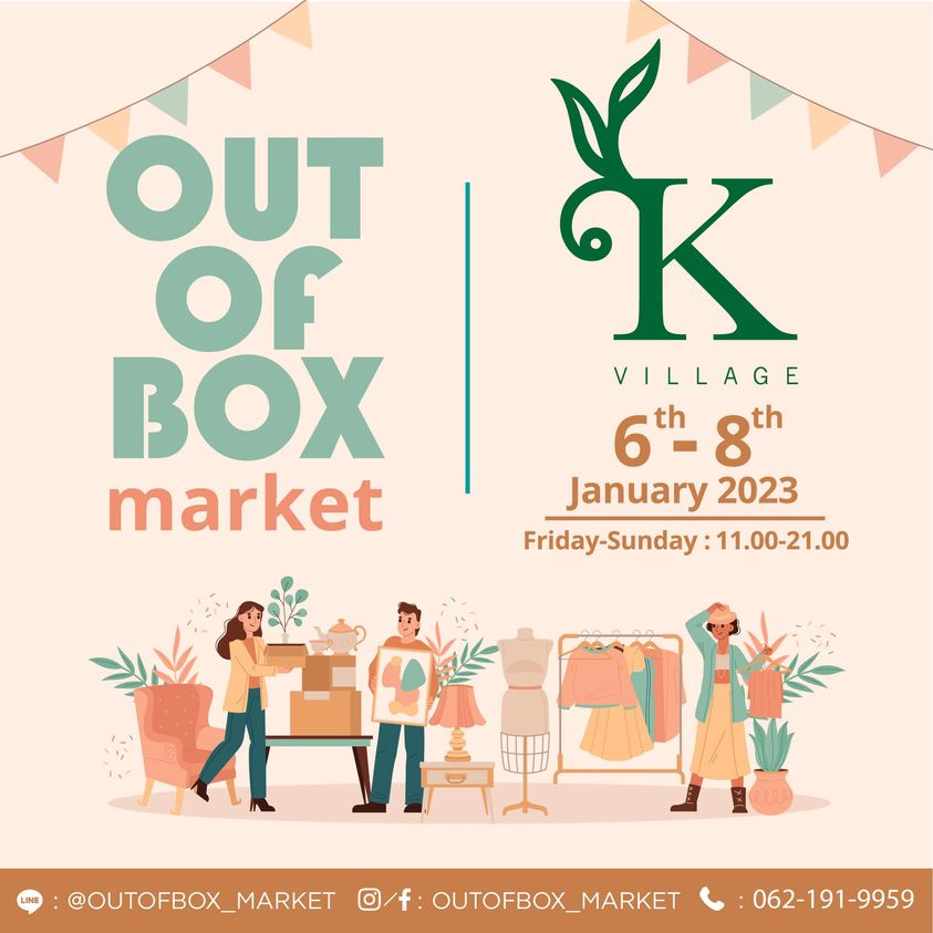 วันที่ 6 - 8 ม.ค. 2023 ที่ K-Village ถ.สุขุมวิท 26 เพิ่มเติมที่ fb.com/outofboxxmarket