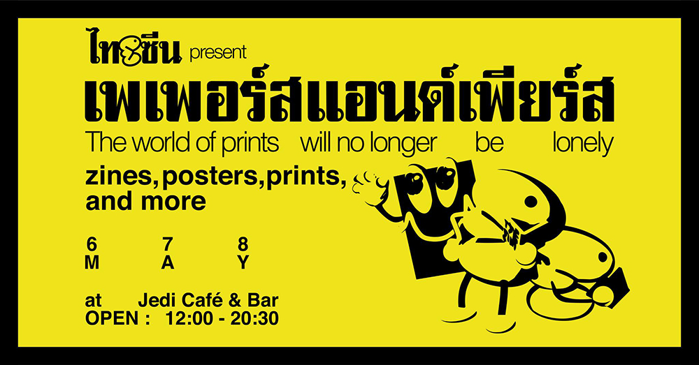 งานนี้จัดขึ้นโดย TYE ZINE กลุ่มคนที่หลงใหลในสิ่งพิมพ์ และเพิ่งปล่อยซีนเล่มแรกไปเมื่อปลายปีที่แล้ว ตอนนี้เขาได้ขยับขยายมาเป็นพับลิชชิงเฮาส์อิสระ ที่ชวนคนน่าสนใจมาครีเอตซีนสนุก ๆ ด้วยกัน ในงานนี้เราจึงจะได้ไปพบกับซีนและหนังสือจากพับลิชชิงที่น่าสนใจในไทยอย่าง DEN, ARC PRESS, INTERESTING PICTURES รวมไปถึงสำนักพิมพ์อิสระจากต่างประเทศ แถมยังมีโซนนิทรรศการที่ชวนศิลปินหลายคนมาปล่อยของ เช่น Paka, Lurear, Napan, Tisha W., Kanrapee, MM.Kosum, Angel Ranida, theindoorkid, CakeChinnae, Jan Thanattha และ Joyce Chen เป็นคอมมูนิตี้ย่อม ๆ ที่ไวบ์ดีสุด ๆ