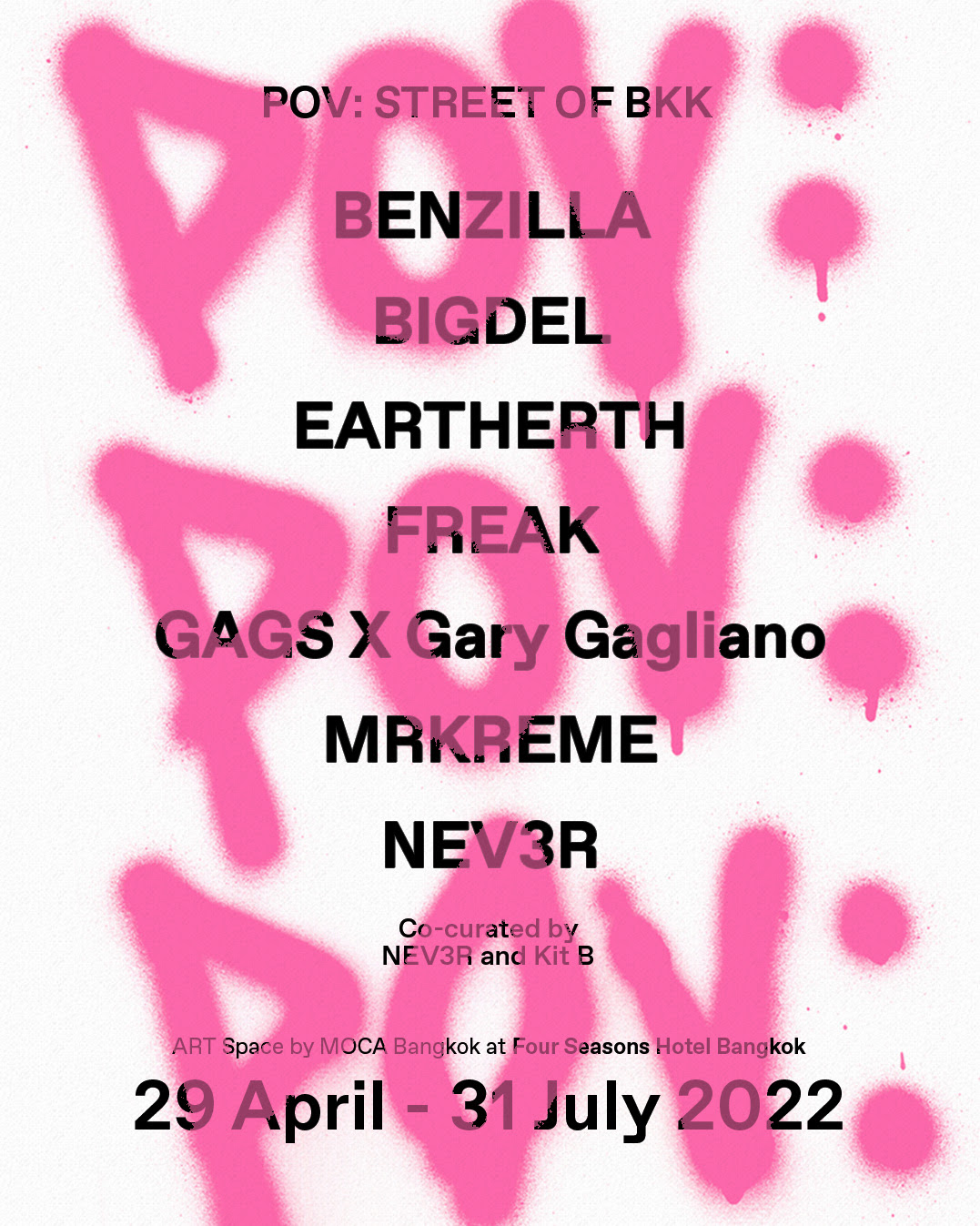 นิทรรศการการรวมตัวของศิลปินสายสตรีตอาร์ต 7 คน ที่ดึงแรงบันดาลใจจากการใช้ชีวิตในกรุงเทพฯ มาถ่ายทอดเป็นชิ้นงาน สื่อถึงความเป็นไปในเมืองใหญ่ตามสไตล์ของตัวเอง งานนี้ได้หนึ่งในศิลปินที่จัดแสดงผลงานอย่าง NEV3R หรือ มงคล รัตนภักดี มาร่วมคิวเรตกับ คณชัย เบญจรงคกุล