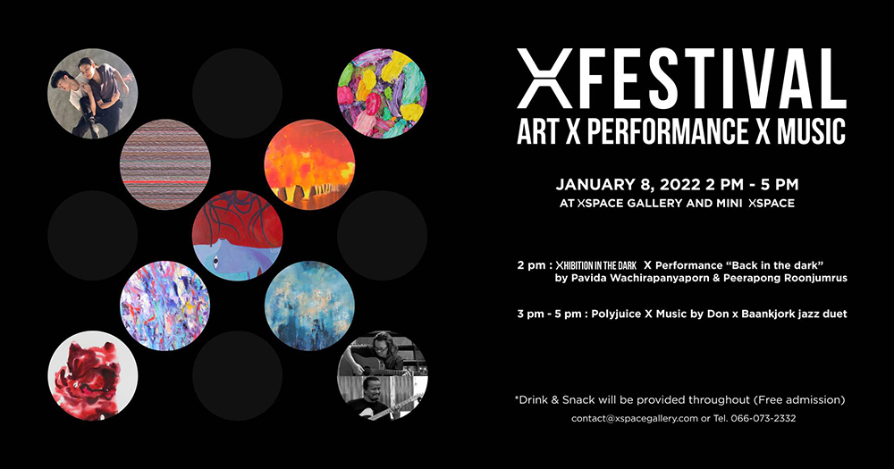 เทศกาลต้อนรับปีใหม่ที่ผนวกนิทรรศการศิลปะเข้ากับงานศิลปะแสดงสดและการแสดงดนตรีสดเข้าไว้ด้วยกัน โดยประกอบด้วยกิจกรรมต่างๆ อย่าง Xhibition in the Dark x Performance "Back in the Dark" การแสดงสดที่ตีความนิทรรศการศิลปะในพื้นที่มืด Xhibition in the Dark โดย มิ้น ภาวิดา วชิรปัญญาพร และ โอม พีระพงศ์ รุณจำรัส, Polyjuice x Music การแสดงดนตรีสดตีความนิทรรศการศิลปะนามธรรมเปี่ยมสีสัน Polyjuice โดย Don x Baankjork Jazz Duet และ นิทรรศการ Art x Furniture presents Tawan Wattuya การแสดงงานดีไซน์ผนวกงานศิลปะโดย ตะวัน วัตุยา แถมในงานยังมีอาหารว่างและเครื่องดื่มให้บริการฟรีอีกด้วยนะ